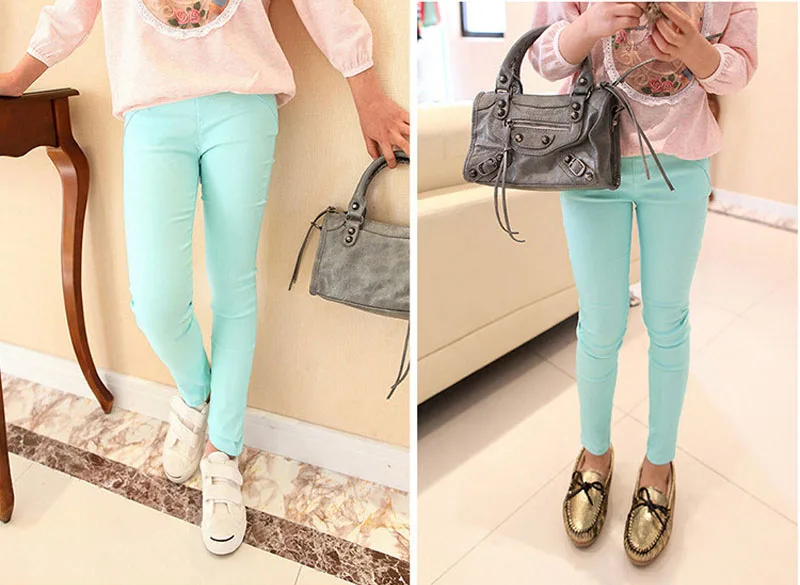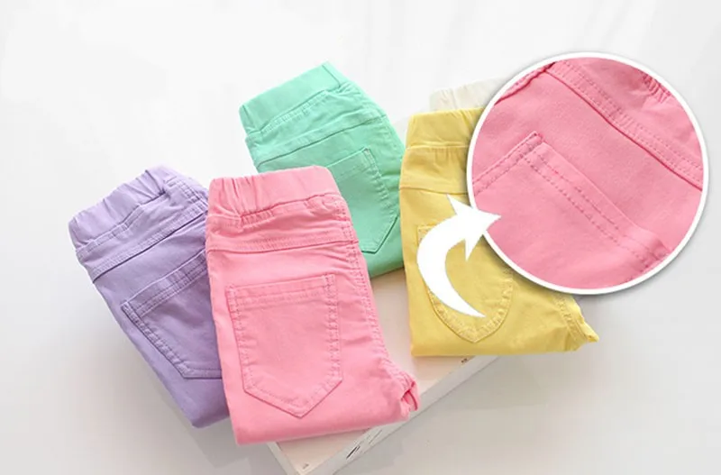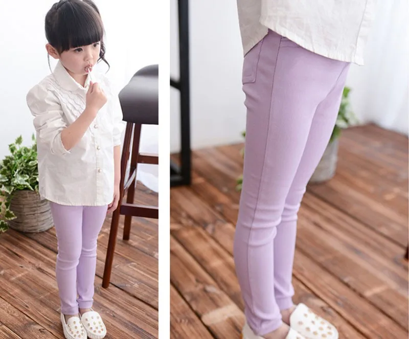 Color: Sky blue, Kid Size: 6 - Girls Pants Children Kids Pencil Pants Spring Summer Fashion Candy Colors