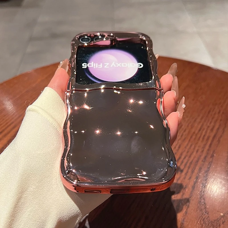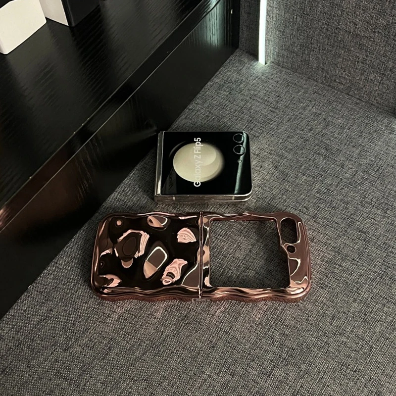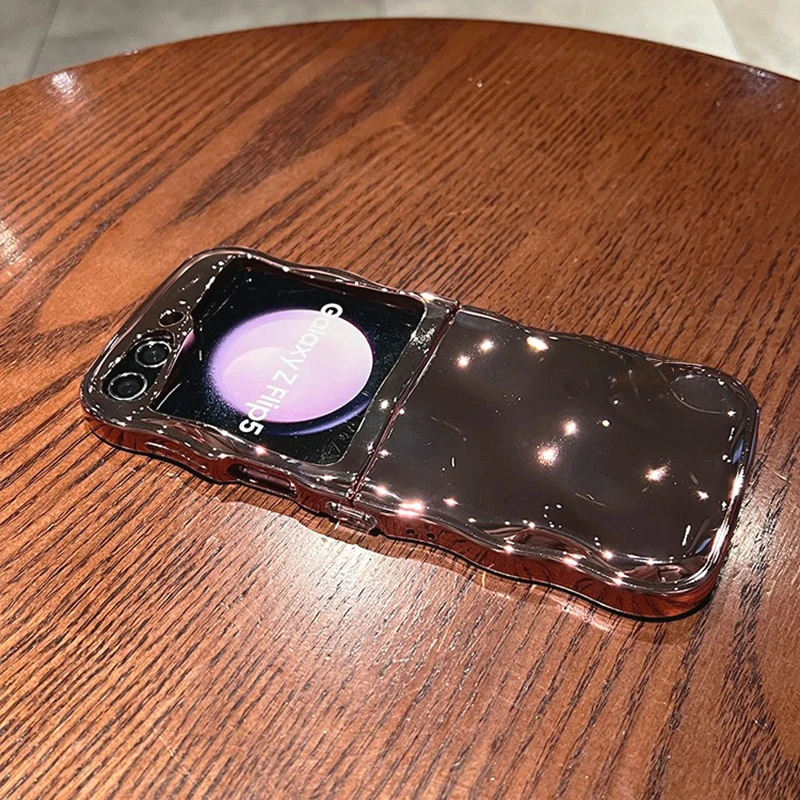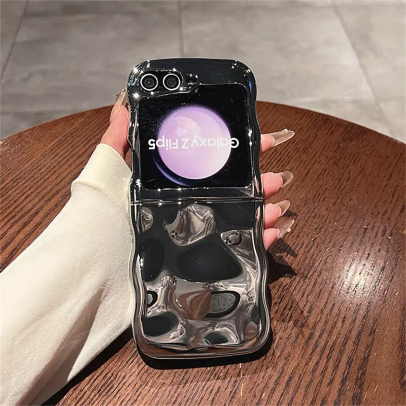 Cartoon Stone Pattern Gloss Wave Case for Samsung Galaxy Z Flip 6 5 flip6 Plating Meteorite Soft TPU Shockproof Ins Korean Cover