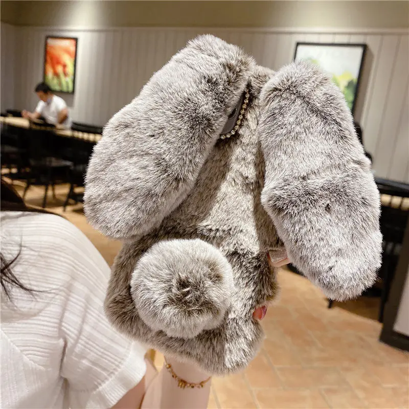 Color: SKY BLUE, Material: PP - Warm Plush Rabbit Fluffy fur Cover for Samsung A15 A25 A35 A55 A14 A24 A34 A54 A13 A23 A33 A53 A12 A22 A32 A52 A51 Phone Case