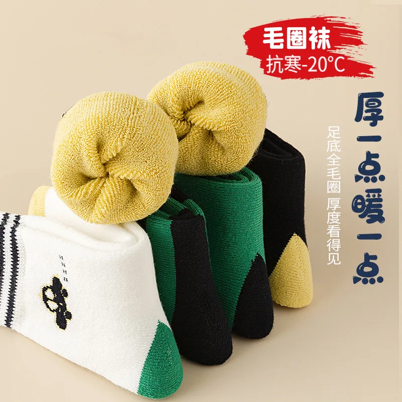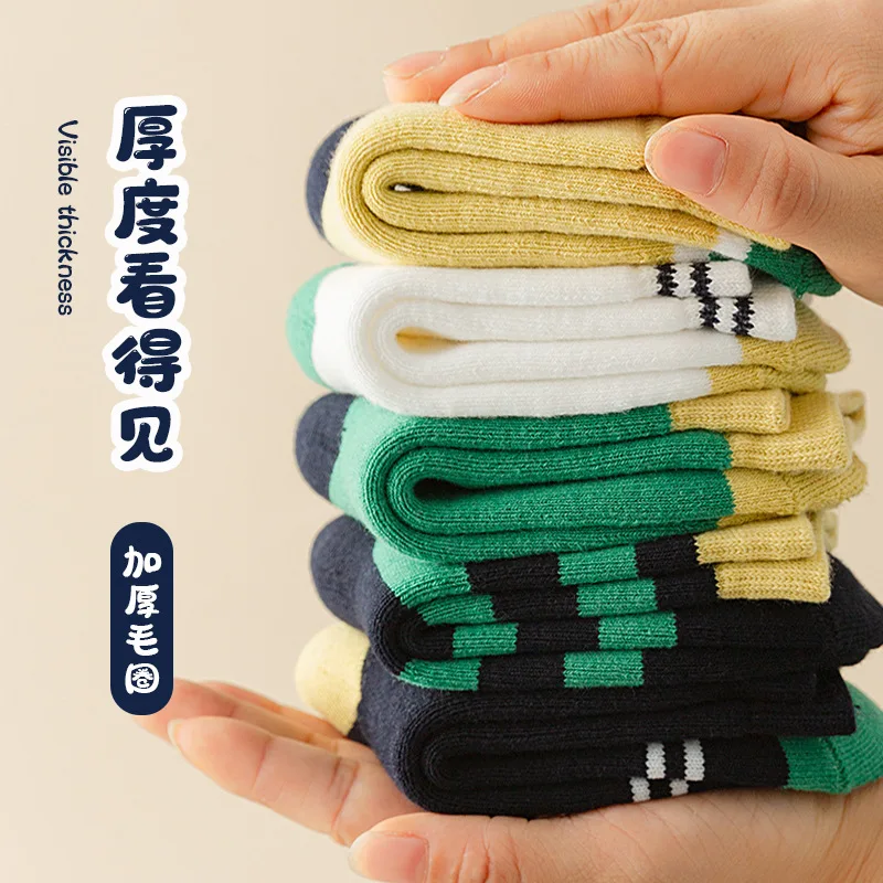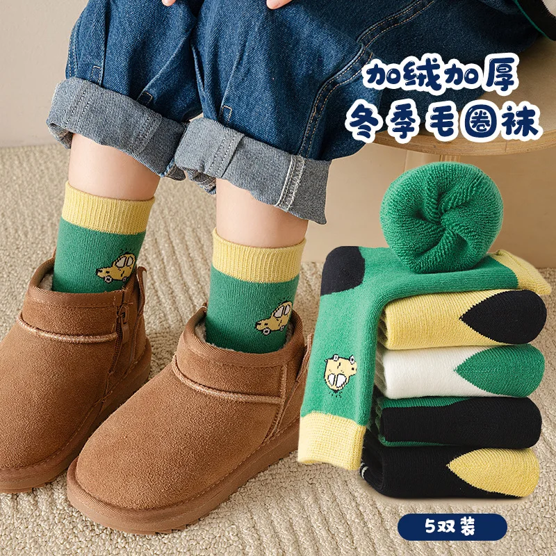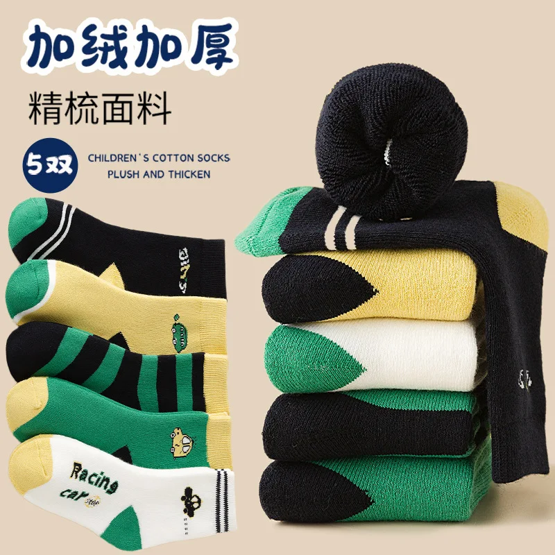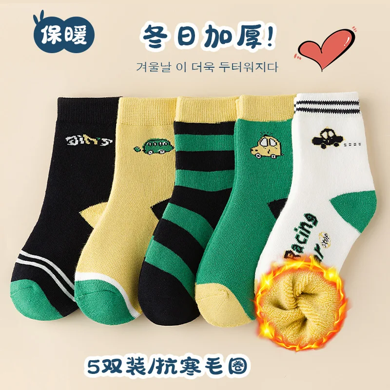 Color: SKY BLUE, Size: 10-12T - Children's Winter Socks 5 Pairs Student's Thick Cotton Socks Boys Warm Winter Socks Cartoon Racing Car Pattern
