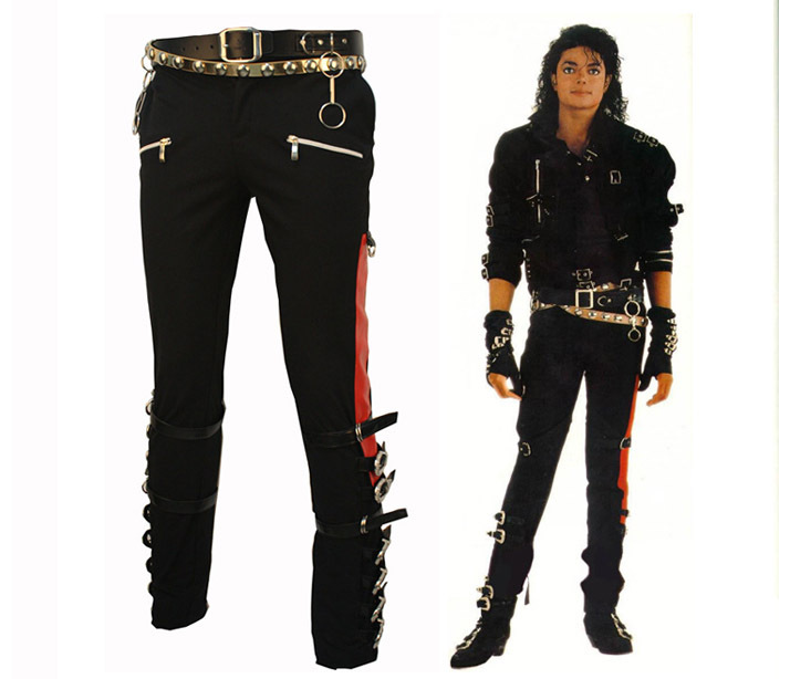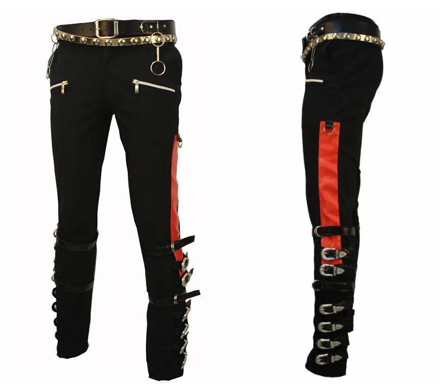 Michael Jackson MJ PROFESSIONAL ENTERTAINERS BAD TROUSERS PANTS PUNK BLACK BUCKLE