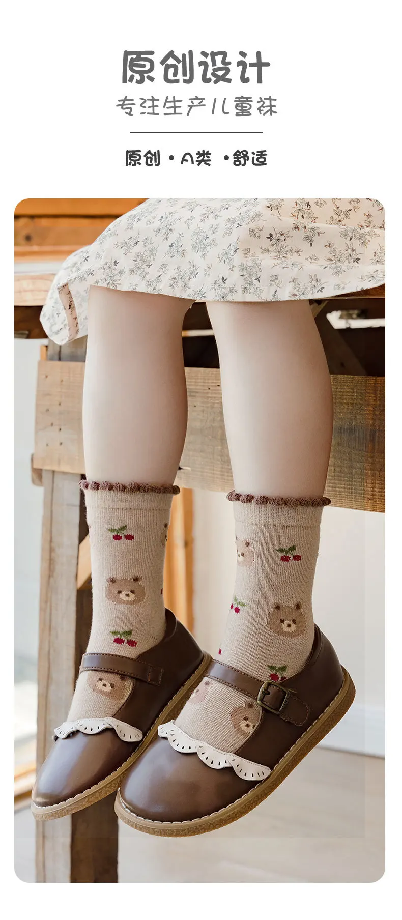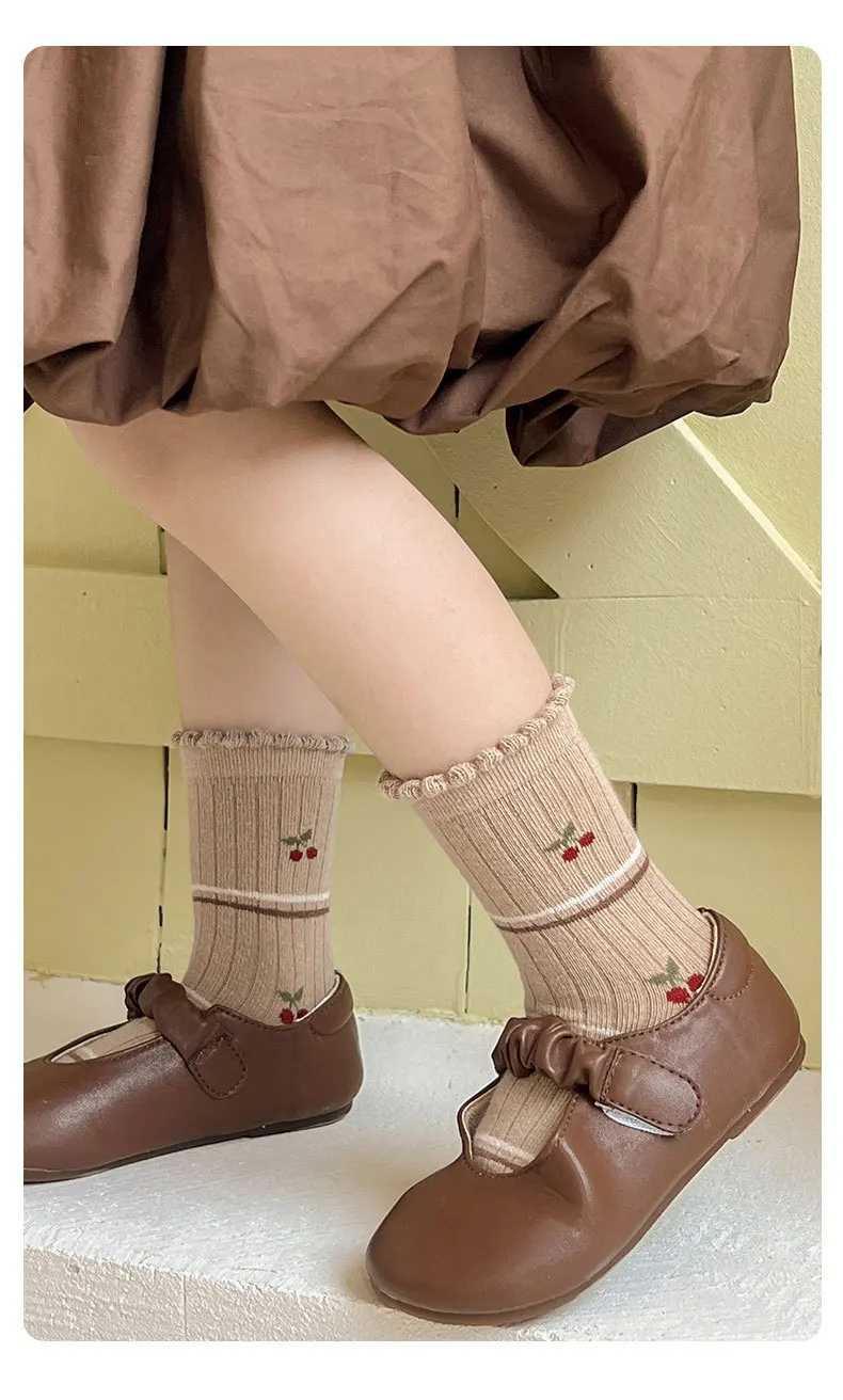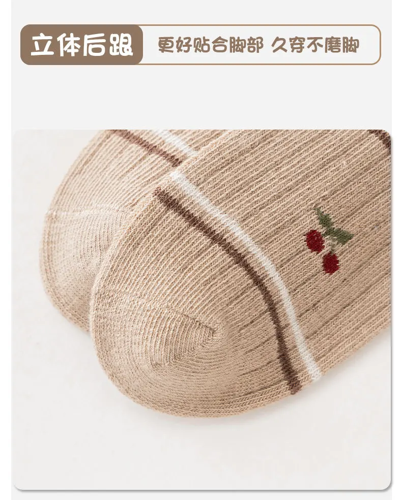 Color: SKY BLUE, Size: 7-9T - Autumn Winter Children's Socks Cute Coffee Bear Cartoon Cotton Socks Baby Girls 5 Pairs Mid Calf Socks