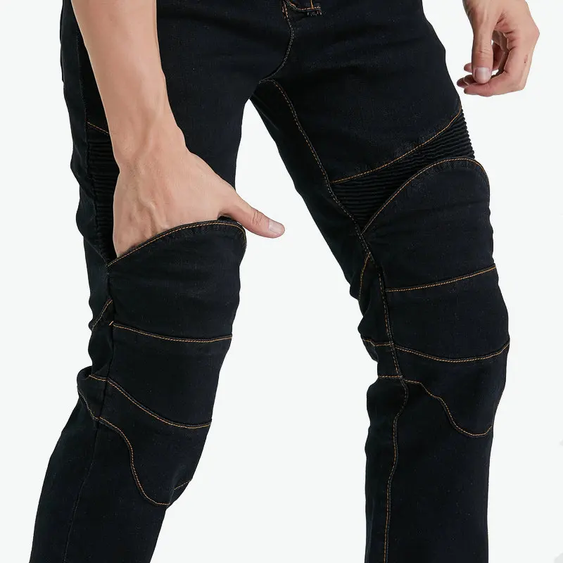 Color: SKY BLUE, Size: L - Mens Black Biker Jeans Motocycle Denim Pants Male Stretch Original Trousers Off-road Pants Protection Clothing 4xl Plus Size