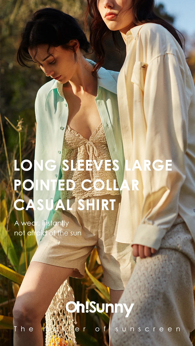 Color: SKY BLUE, Size: L - OhSunny Women Shirts Sun Protection Long Sleeve Coat UPF50+ Anti-UV Breathable Fashion Loose Blouse Outdoor Spring Summer Tops