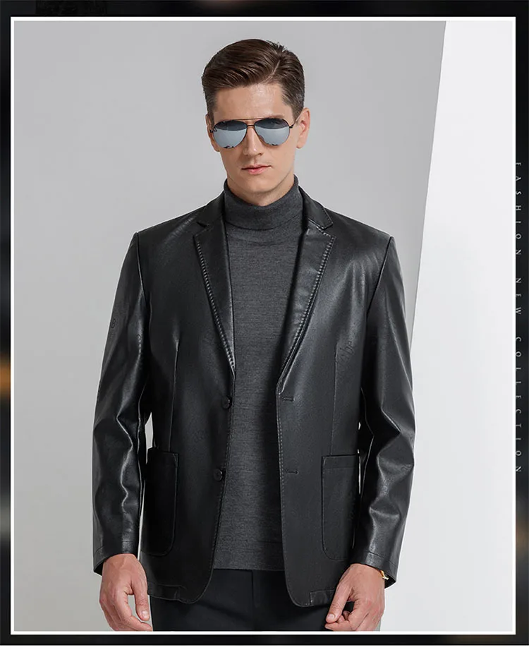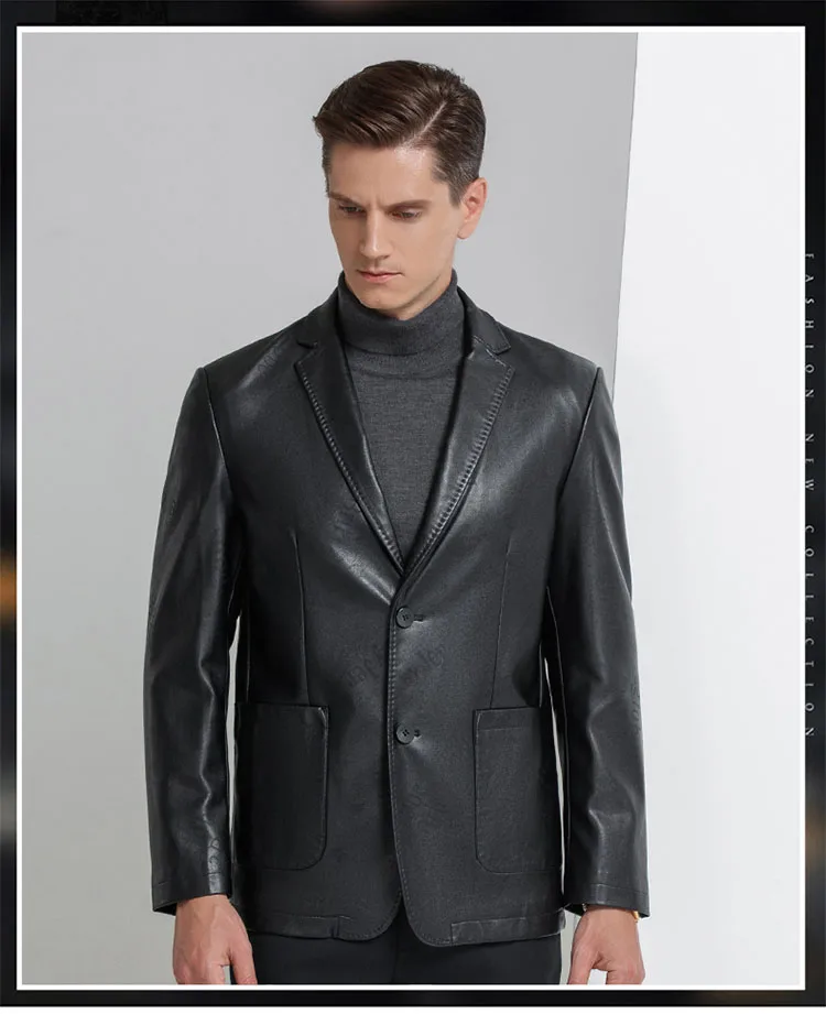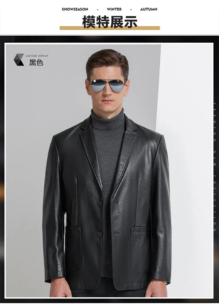Color: SKY BLUE, Size: L - QYLVAWOY Genuine Leather Jacket Men Short Black Leather Coat Male Real Sheepskin Leather Jackets Jaqueta Masculina Men's Clothes