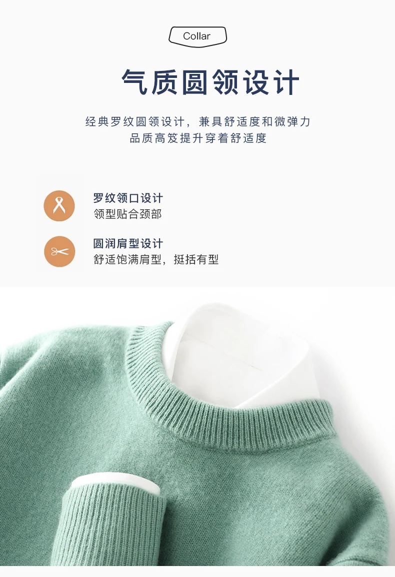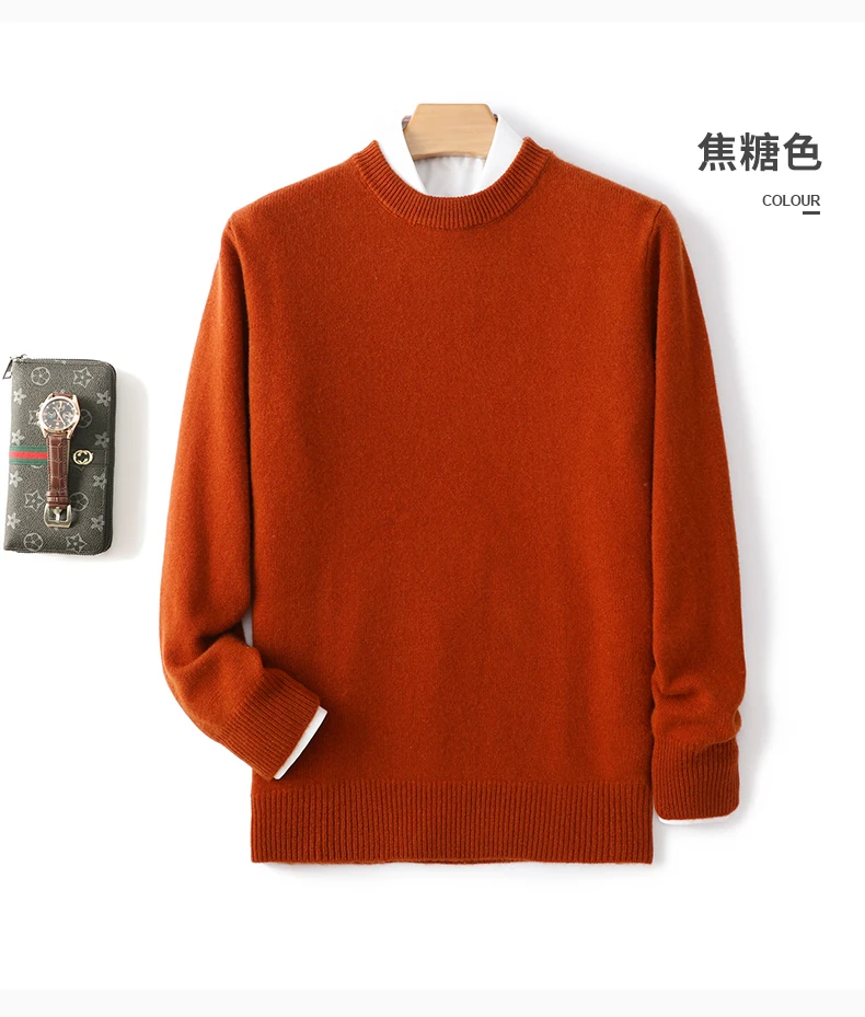 Color: SKY BLUE, Size: L, Ships From: CHINA - Men's 100% Pure Wool Cashmere Sweater O-Neck Pullover Knit Sweater Autumn and Winter New Long Sleeve High-End Jumpers Thick Tops