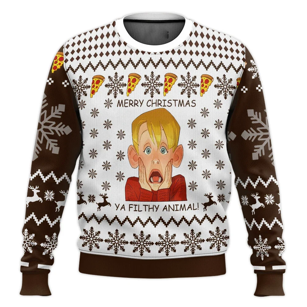 Color: SKY BLUE, Size: L, Ships From: CHINA - Merry Christmas alone at home Ugly Christmas sweater cartoon animation Men's pullover 2026 fashionable couple shirts Sweatshirt