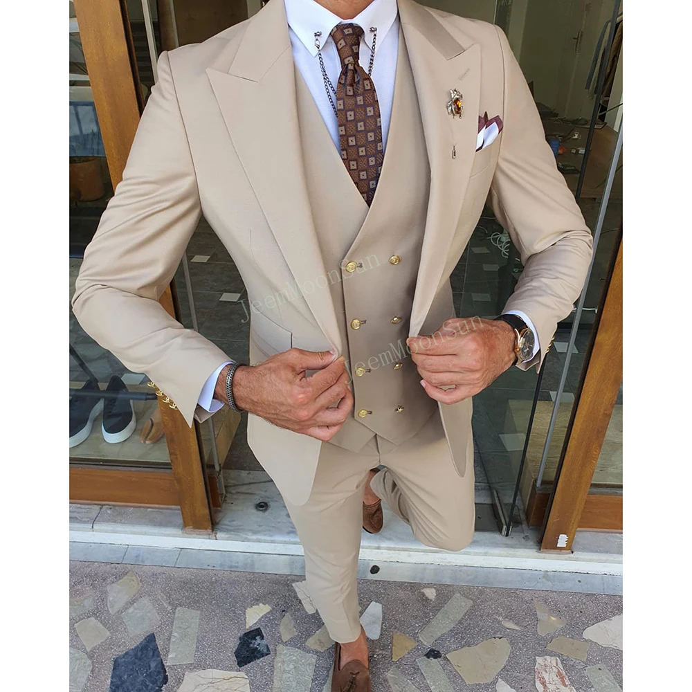 Color: SKY BLUE, Size: XXXL, Ships From: CHINA - 3 Pieces New White Men's Suit 2022 Peak Lapel Slim Fit Casual Tuxedos Groom Tailor Made Terno Masculino (Blazer+Pants+Vest)