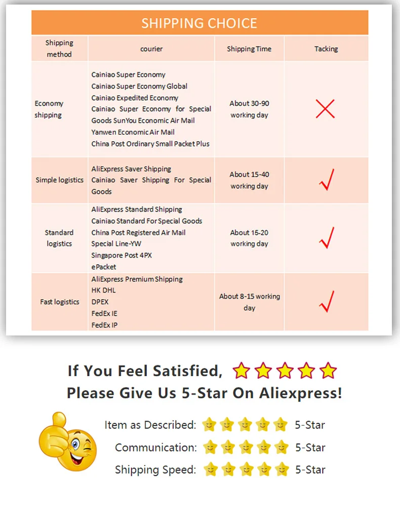 1.We offer you the cheapest pric,so there is no logistics information after the package leaves China.You can receive the package under normal circumstances.If you did not receive the package under the protection of time,please contact us,we will handle the replacement or refund for you,thank you.