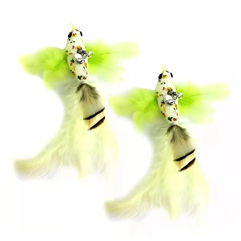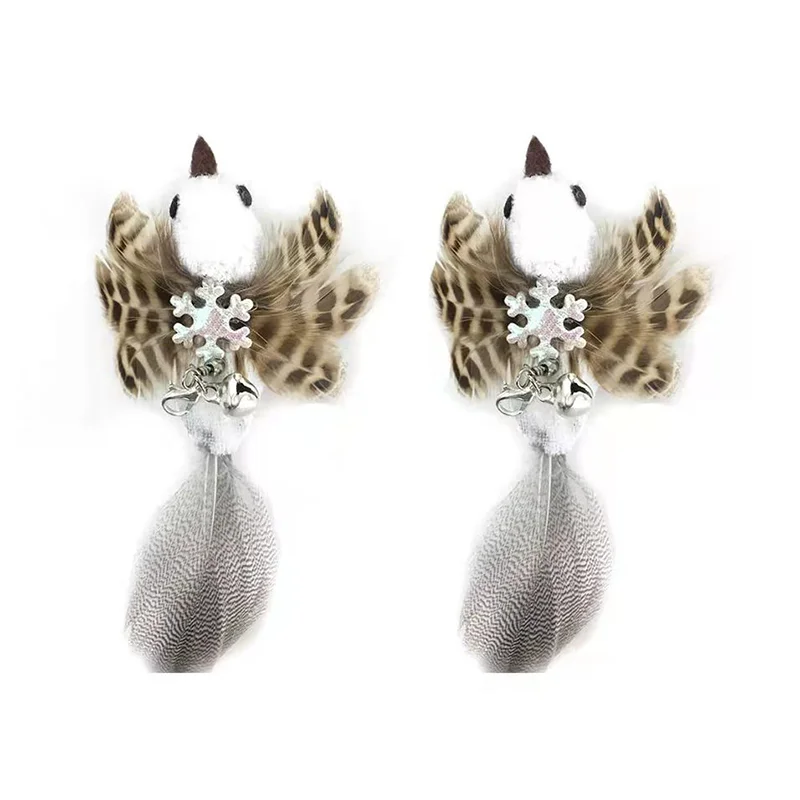 Simulation Bird Interactive Funny Cat Stick Toy Furry Feather Bird With Bell