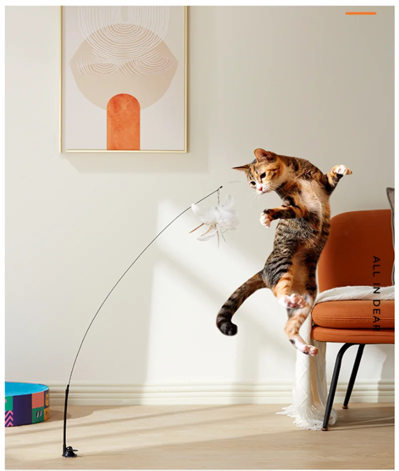 Suction cup type: you can fix it on the floor or wall, and the cat will play with it. You can separate the stick from the base, hold it and play with the cat.