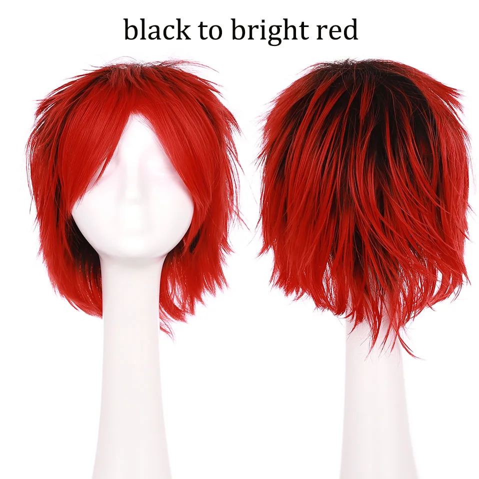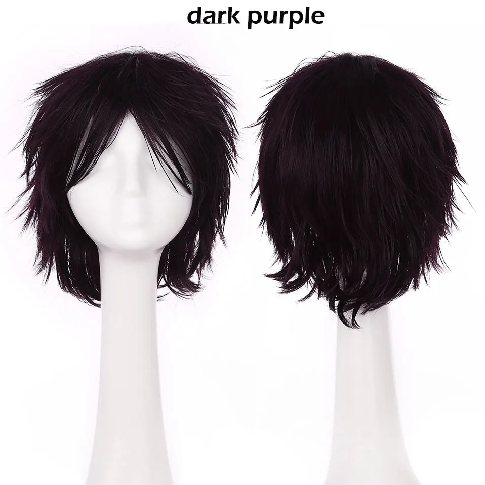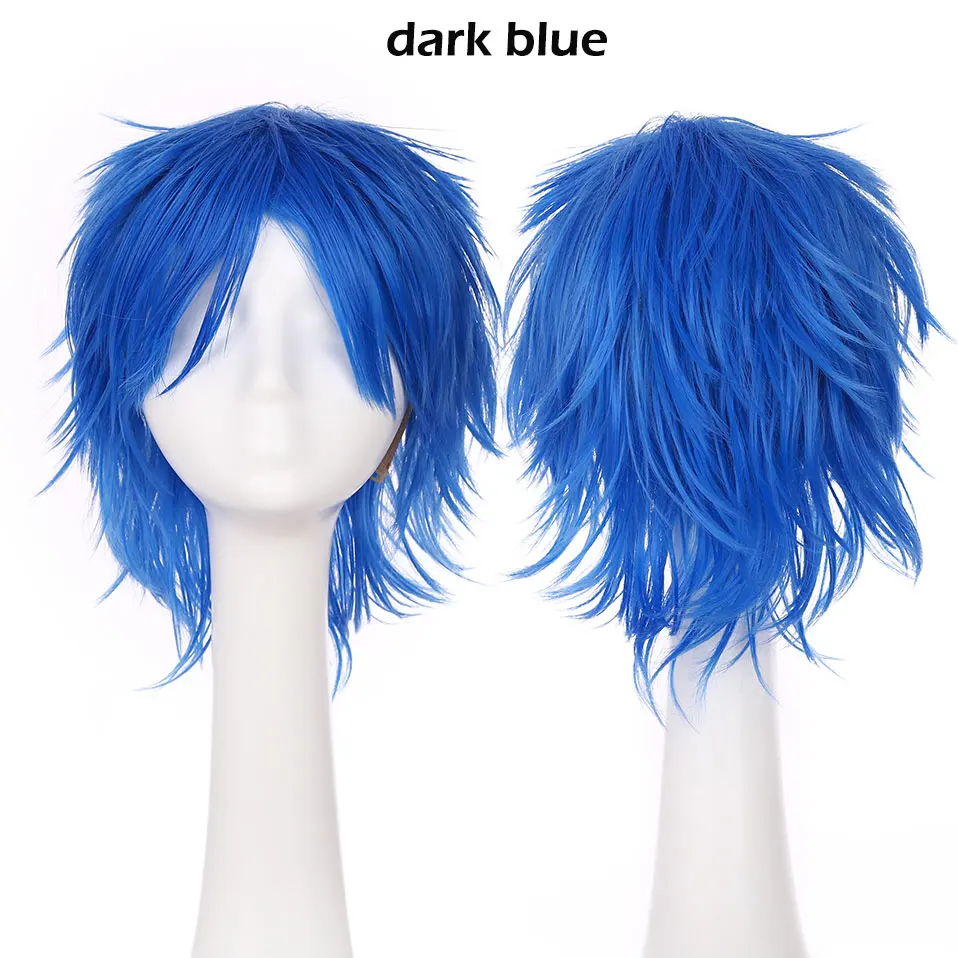 Color: T1B/4/30, Ships From: CHINA, Stretched Length: 8inches - S-noilite Synthetic Short Wig Blue Brown Black Women Men Cosplay Costume Party Head Wigs Hair