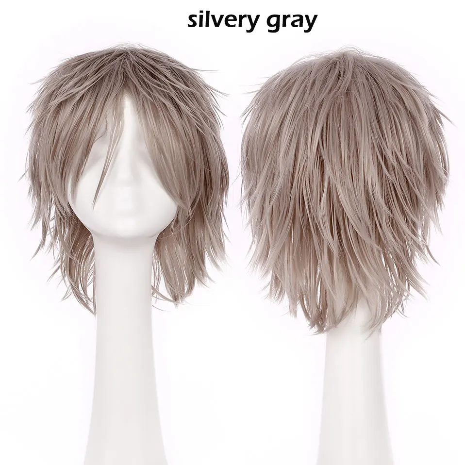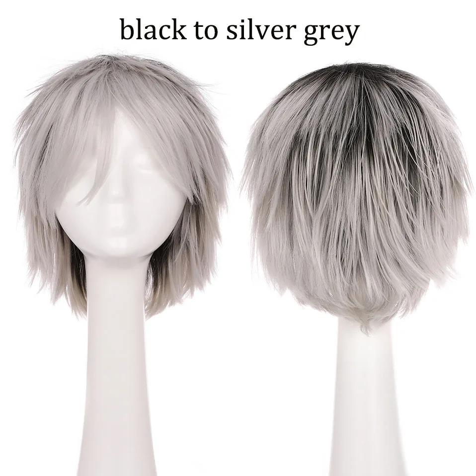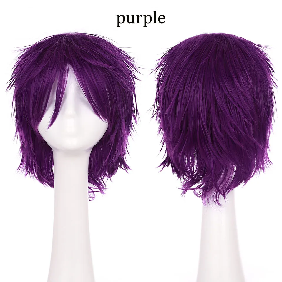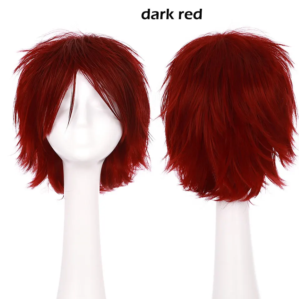 Color: T1B/4/30, Ships From: CHINA, Stretched Length: 8inches - S-noilite Synthetic Short Wig Blue Brown Black Women Men Cosplay Costume Party Head Wigs Hair