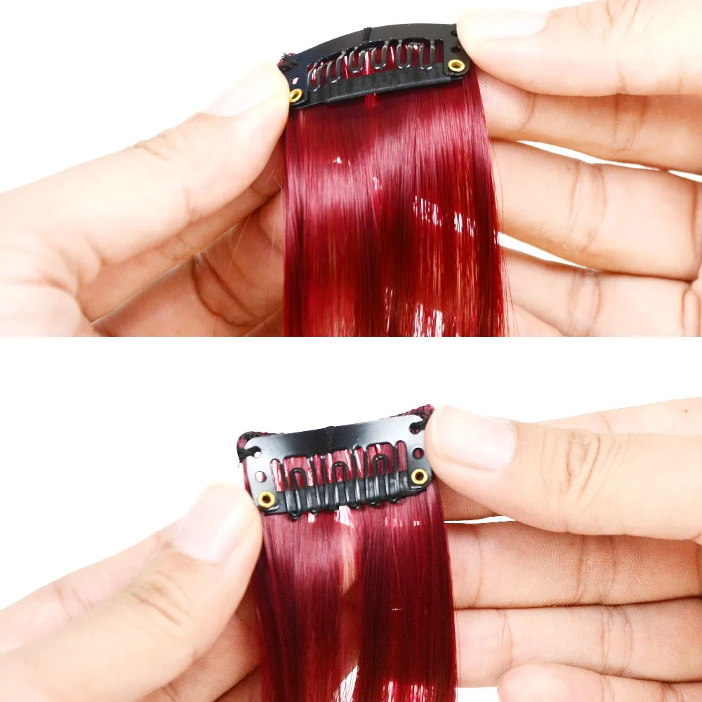 Color: T1B/Red, Stretched Length: 22inches - Synthetic Clip-in Hair Extensions 22" Long Colorful Straight Hair Pieces Synthetic Hairpieces for Daily Festival Party