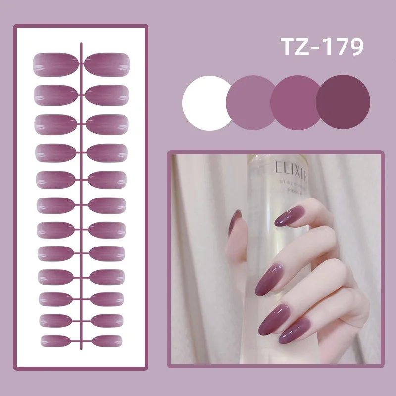 24Pcs/Set Striped long round head bright solid color Press On Acrylic nail art patch fake nails finished wearing manicure Reusable False Nails