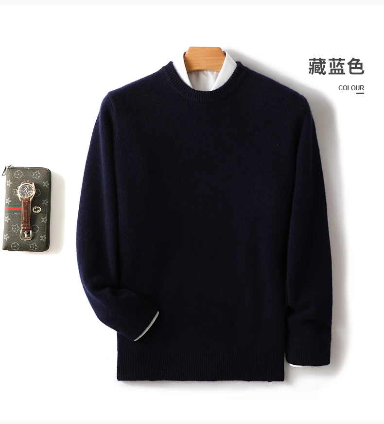 Color: Turquoise, Size: S, Ships From: CHINA - Men's 100% Pure Wool Cashmere Sweater O-Neck Pullover Knit Sweater Autumn and Winter New Long Sleeve High-End Jumpers Thick Tops
