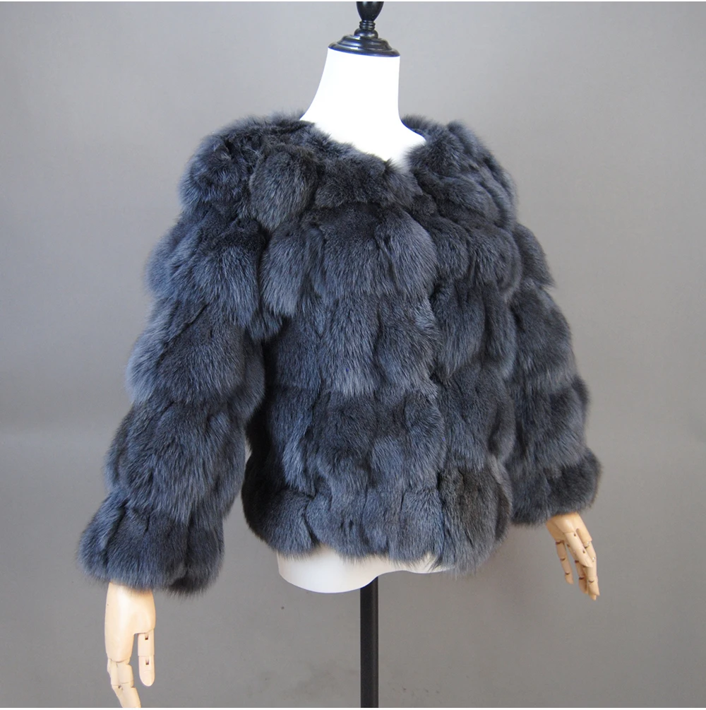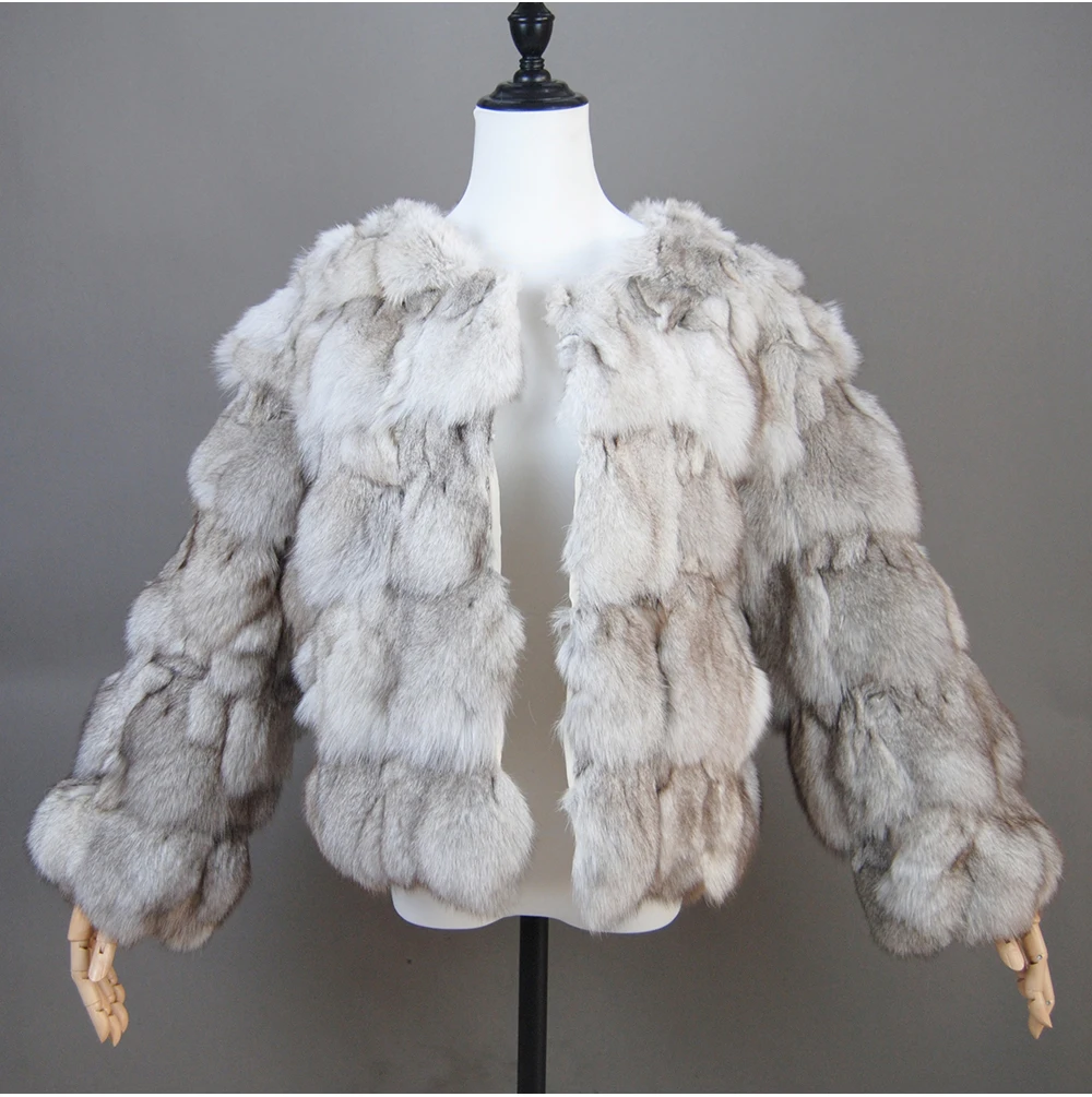 Color: Turquoise, Size: XXL - 2025 New Style Real Fur Coat 100% Natural Fur Jacket Female Winter Warm Leather Fox Fur Coat High Quality Fur Vest