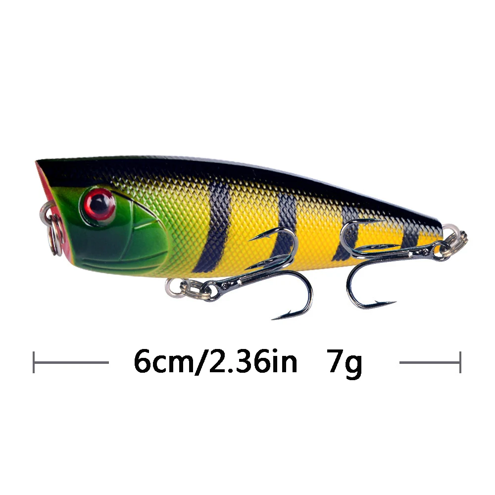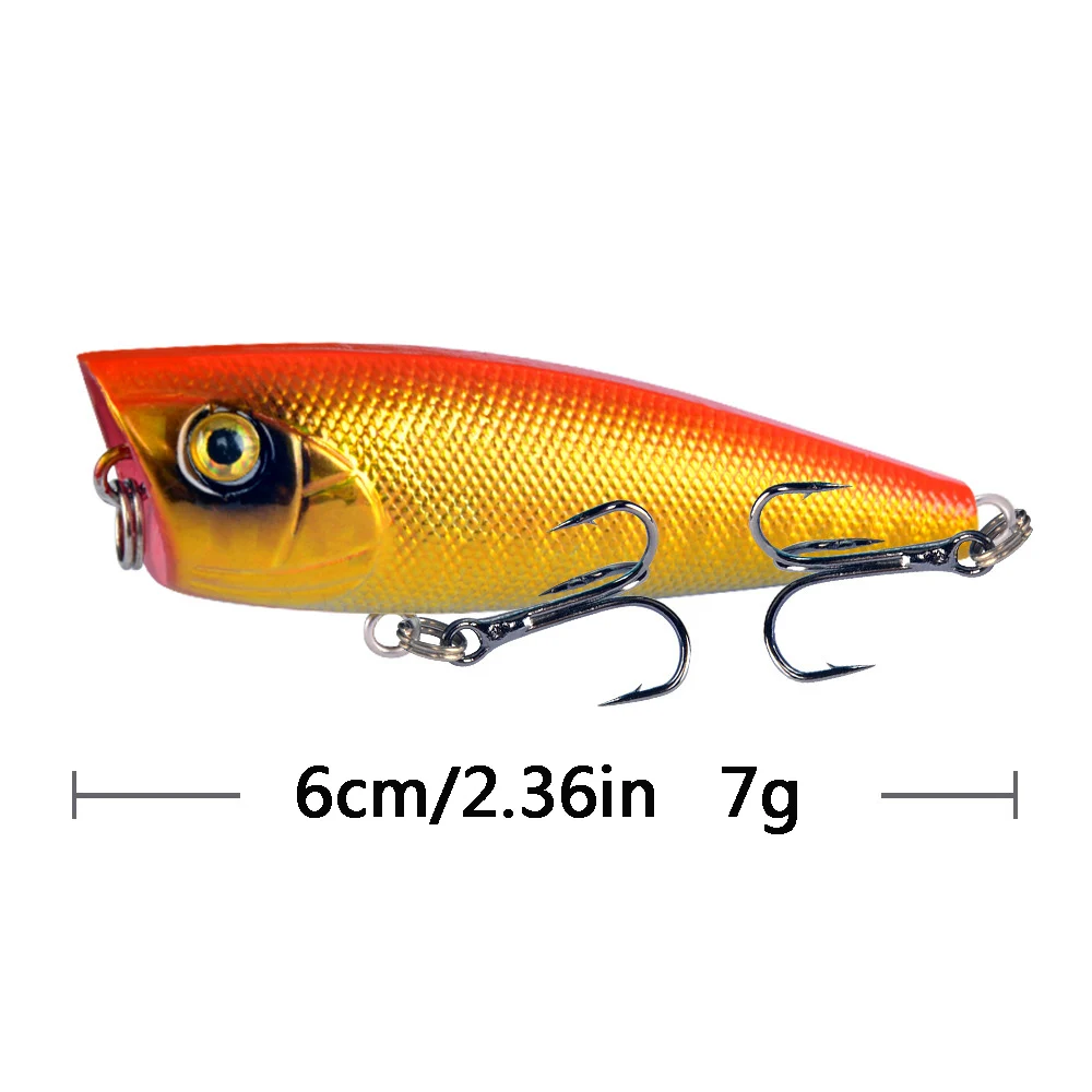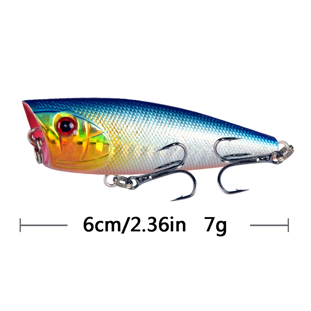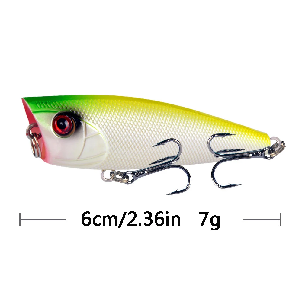 Color: WHITE - 1pc Popper Fishing Lure 6cm/6.5g Hard Bait Artificial Topwater Bass Trout Pike Wobbler Fishing Tackle with 2 Treble Hooks