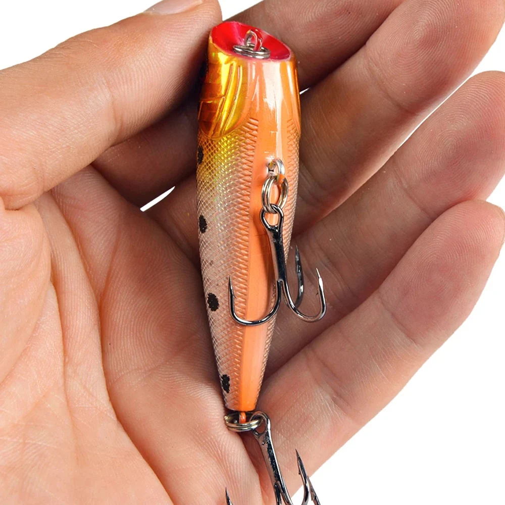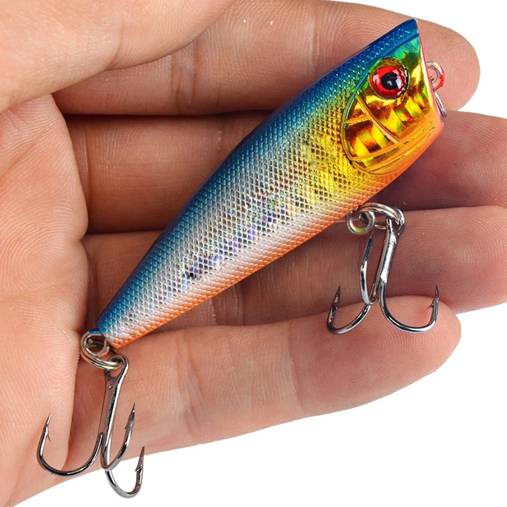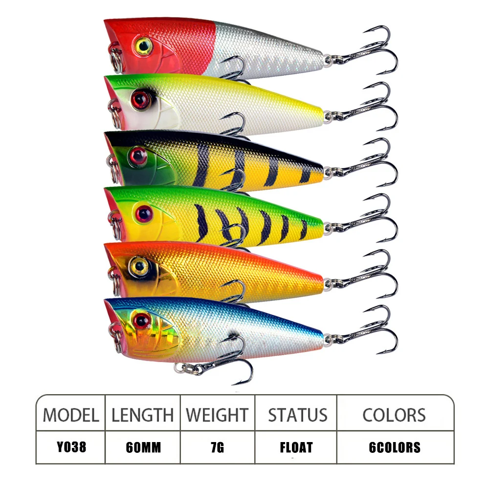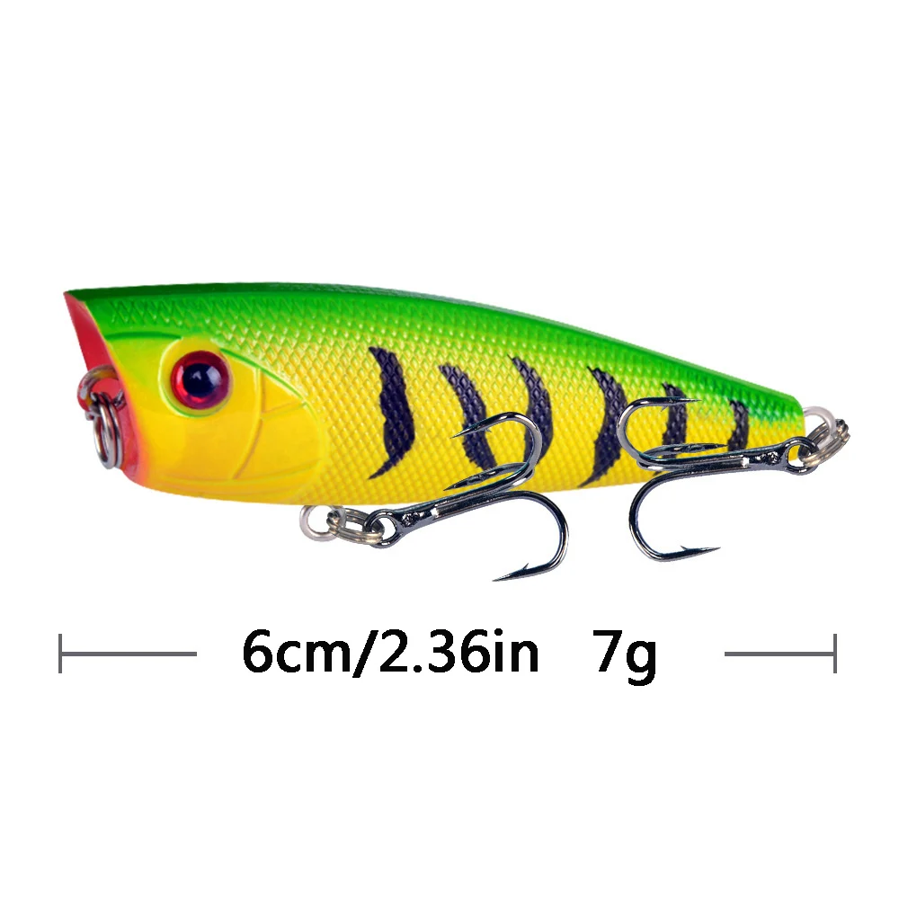 Color: WHITE - 1pc Popper Fishing Lure 6cm/6.5g Hard Bait Artificial Topwater Bass Trout Pike Wobbler Fishing Tackle with 2 Treble Hooks
