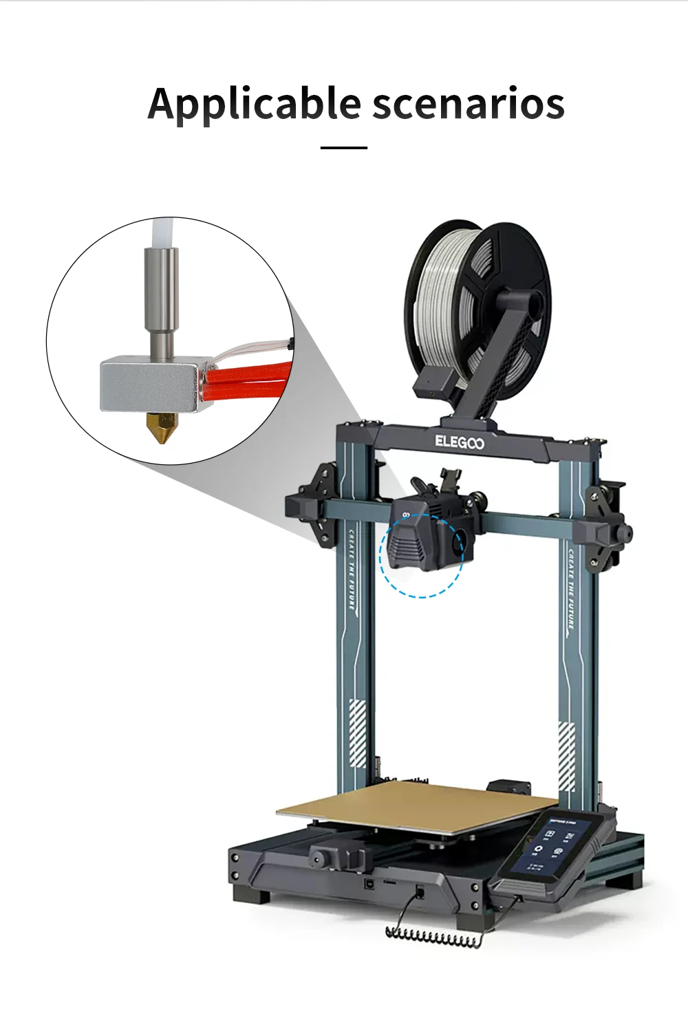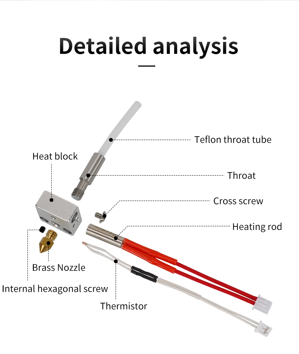 Feature:accelerates the nozzle to dissipate heat, and the heat breakage to insulate, and releases the nozzle blockage.