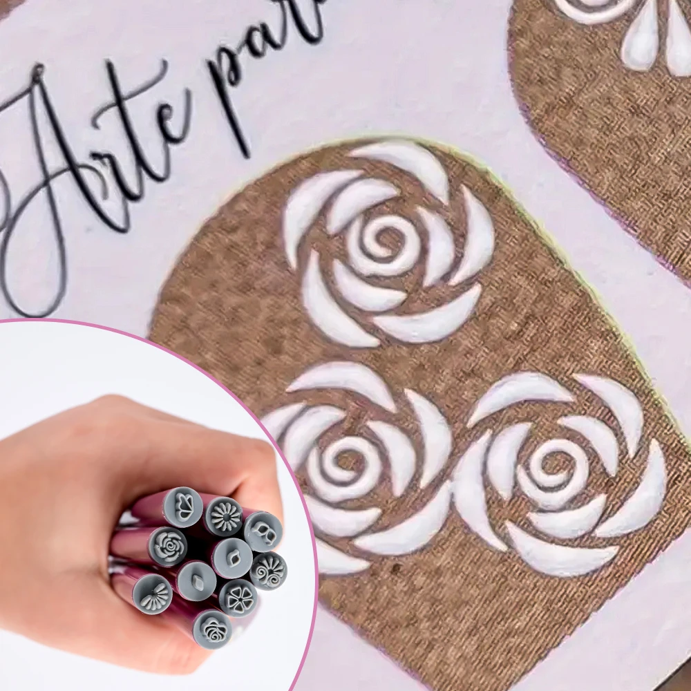 【Nail Art Designs】Create bold and beautiful nail art patterns with our Nail Art Stamper Kit, featuring ten floral and butterfly patterns