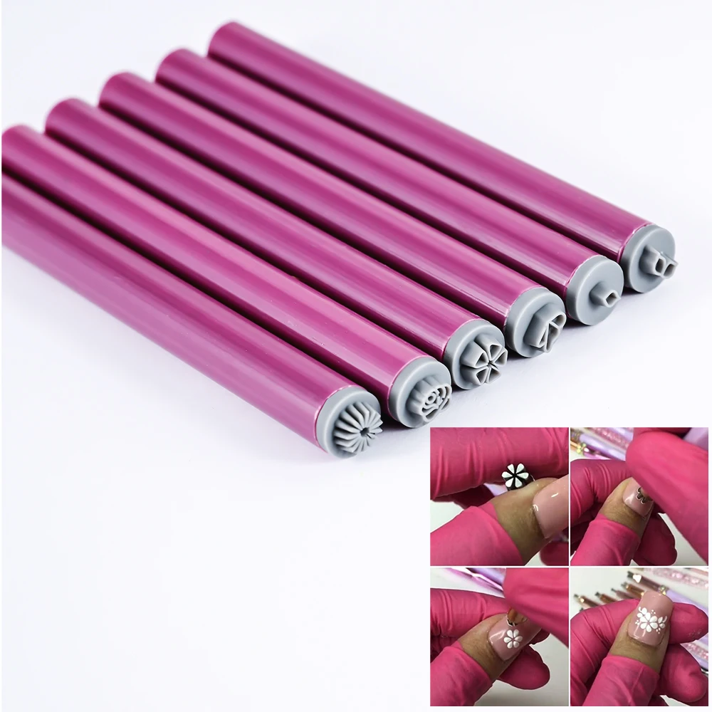 Color: WHITE - 4/6/10pcs Pink Nail Art Stamp Pen Nail Art Stamp Pen Handicraft Nail Art Flower Stamp Nail Diy Graffiti Stamp Pen Dotting Tools