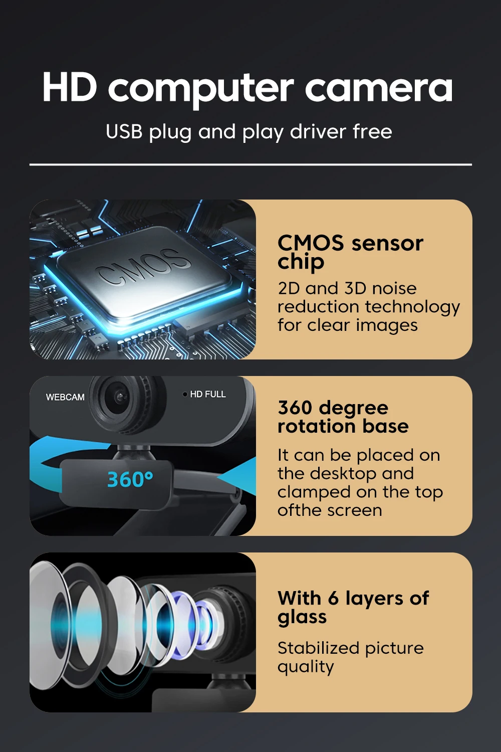 Noise-Canceling Microphone – Computer webcam with microphone can automatically eliminate background noise and clearly capture voice within 8 meters, this web cam is the best choice for video call.