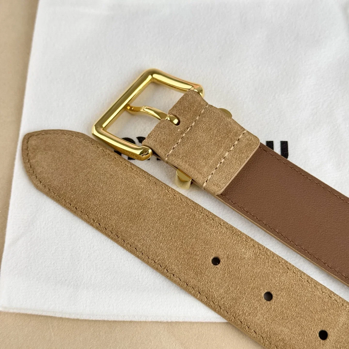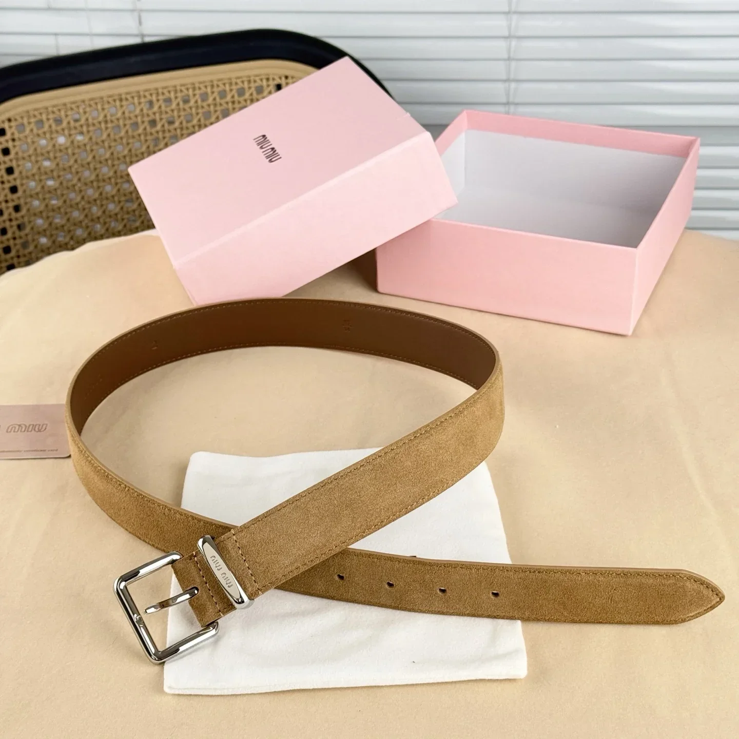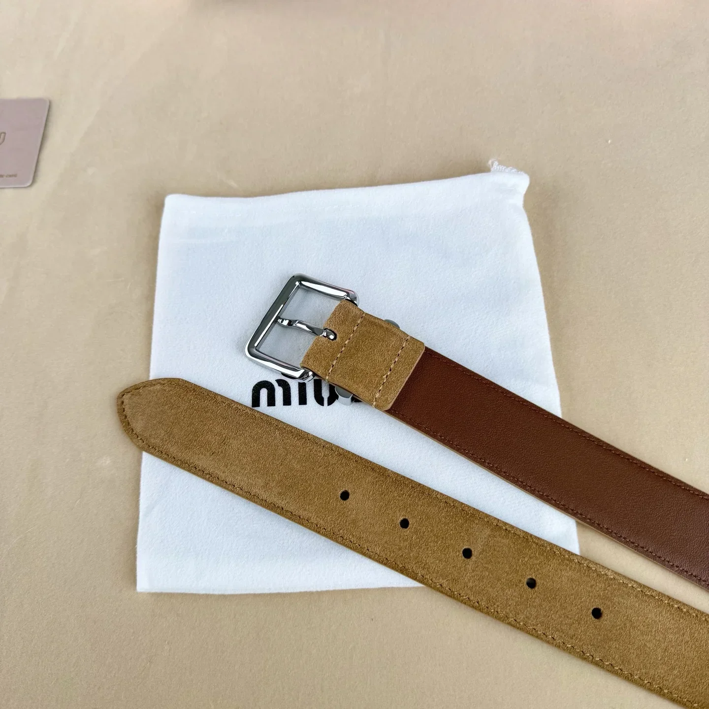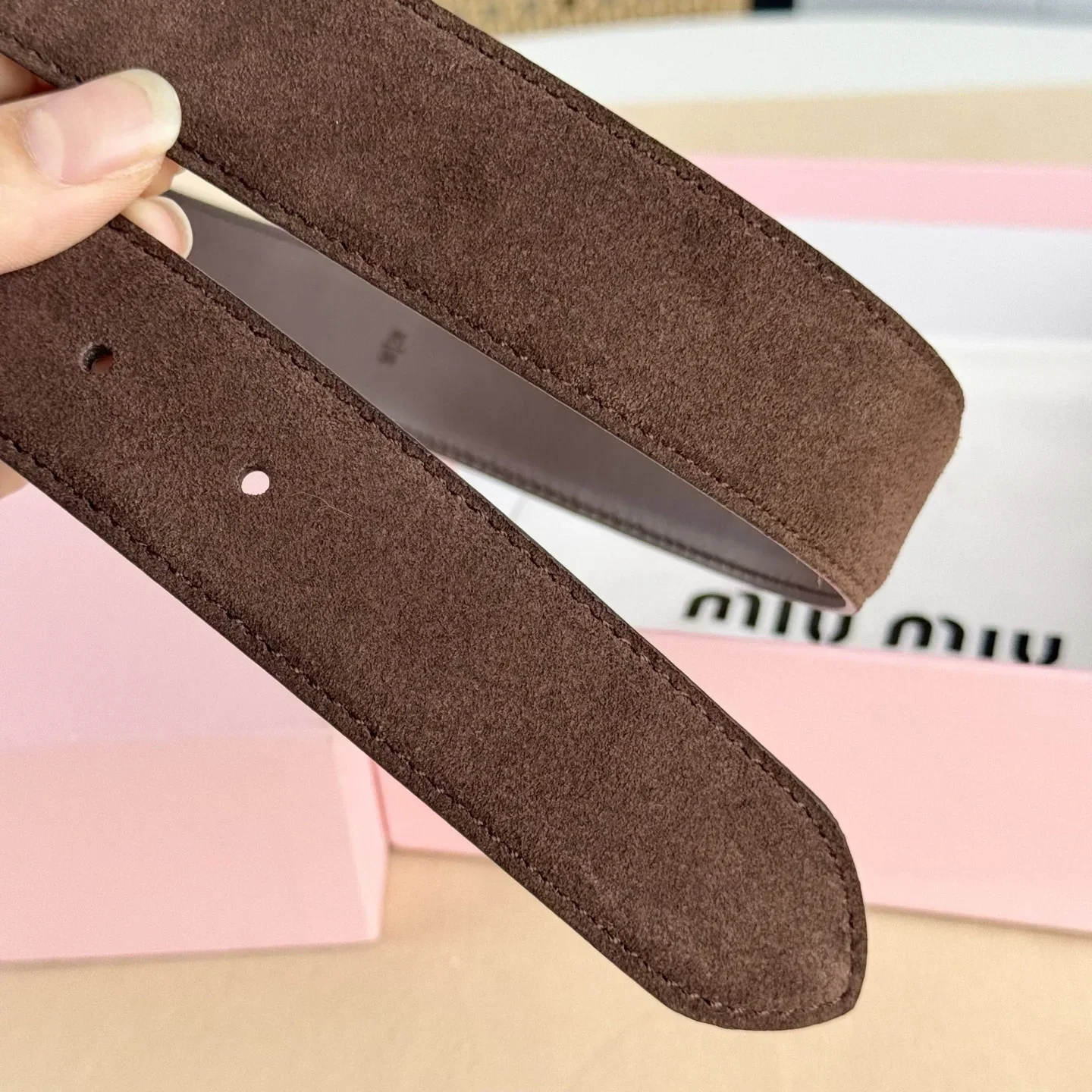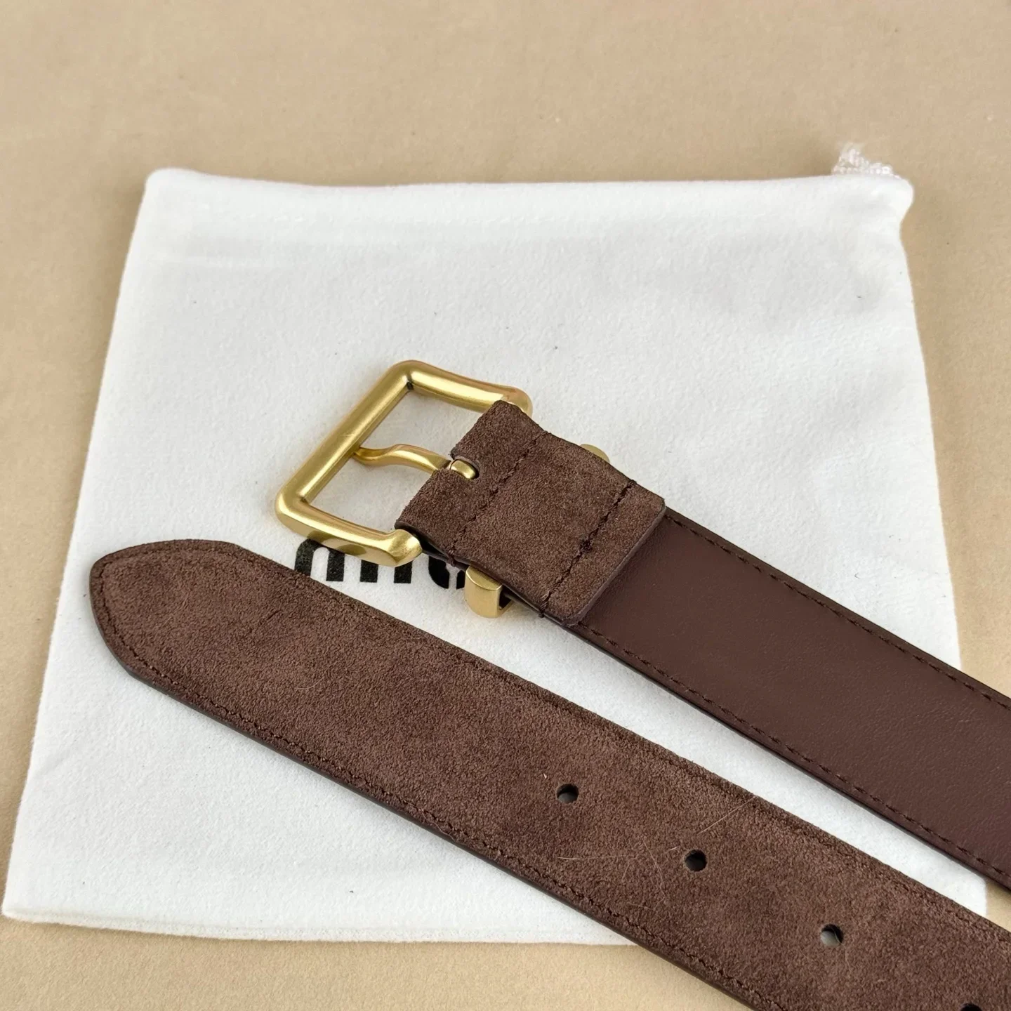 Color: WHITE, Belt Length: 105CM - High-end Gift Simple and Elegant Suede Handmade Belt Metal Buckle Fashion Belt MIU Series Trendy Women's Belt Suede Belt Luxury
