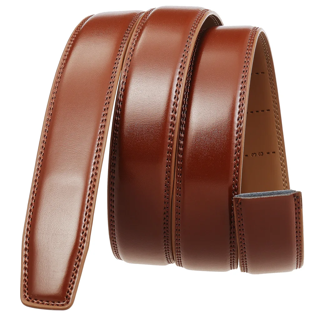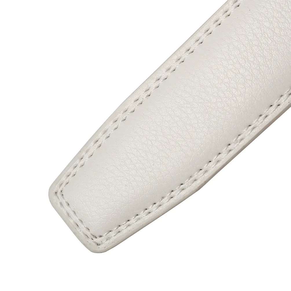 Color: WHITE, Belt Length: 125cm - 90-130cm Brand No Buckle 3.0cm Wide Genuine Leather Automatic Belt Body Strap Without Buckle Belts Men Good Quality No Holes