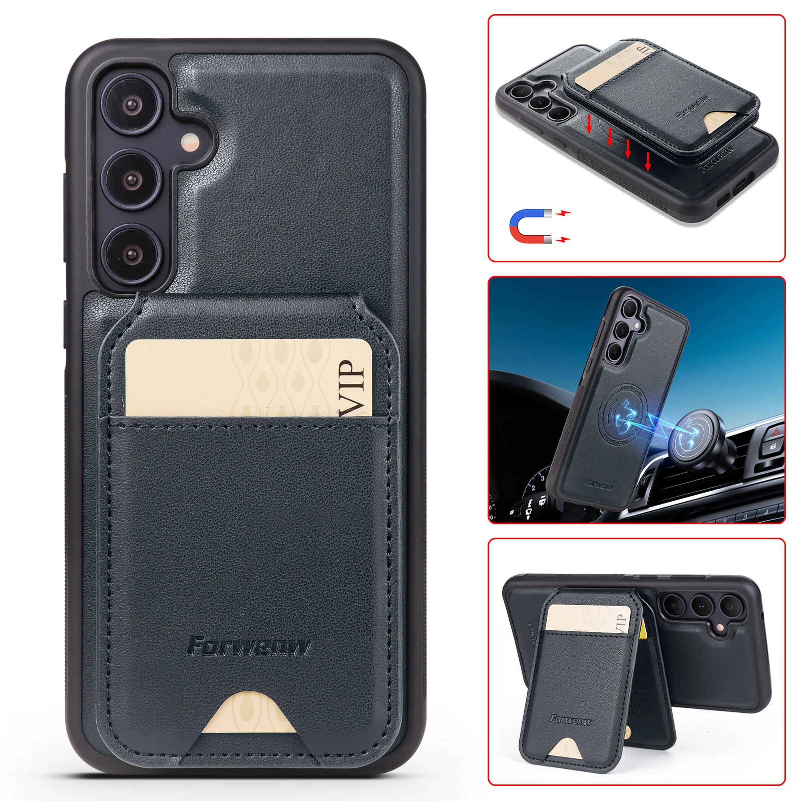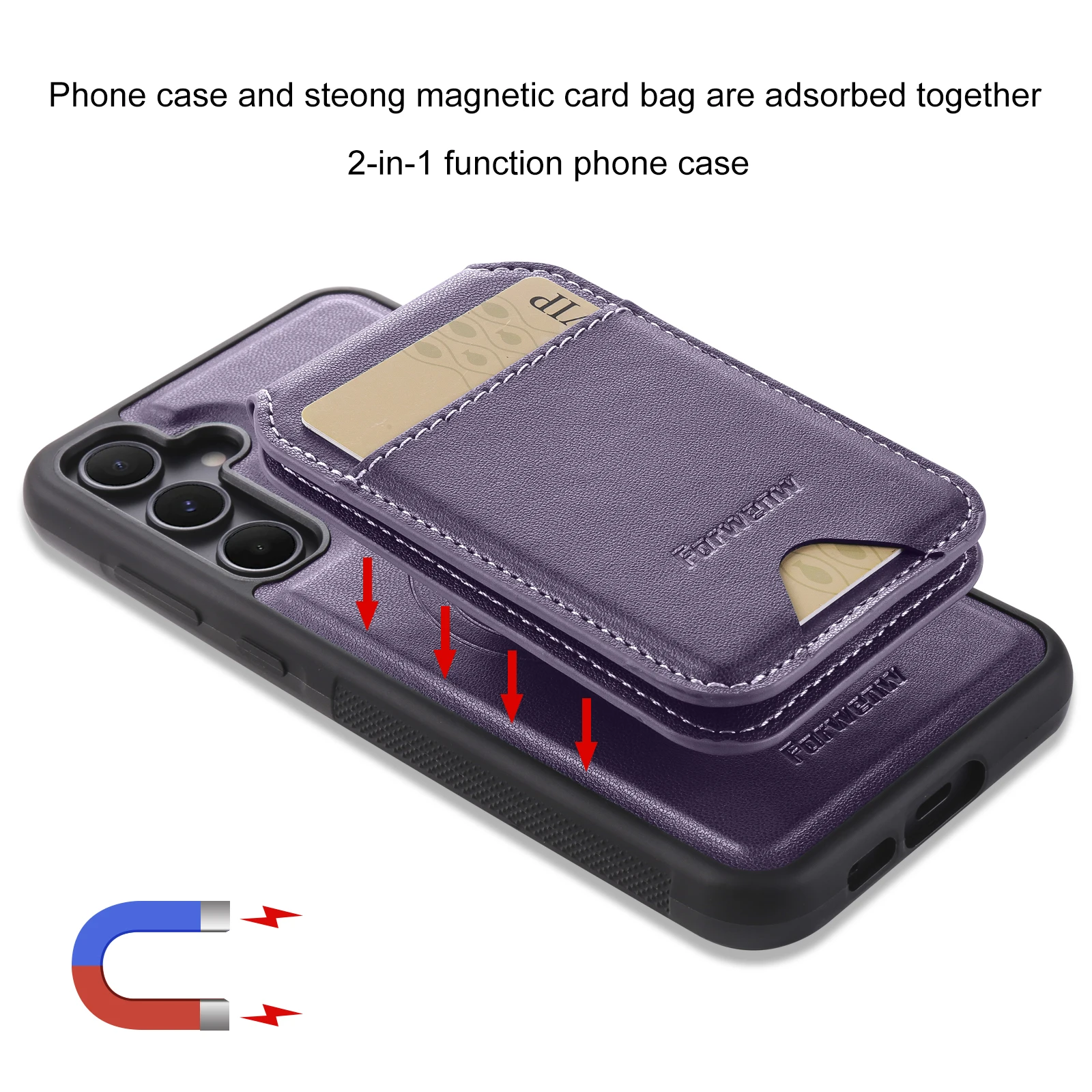 Color: WHITE, Compatibility by Model: Galaxy A55 - Leather Case For Samsung Galaxy A16 A36 A56 A55 A35 A15 A25 S25 S24 Ultra S23 S22 Plus + 2 in 1 Detachable Vertical Wallet Cover