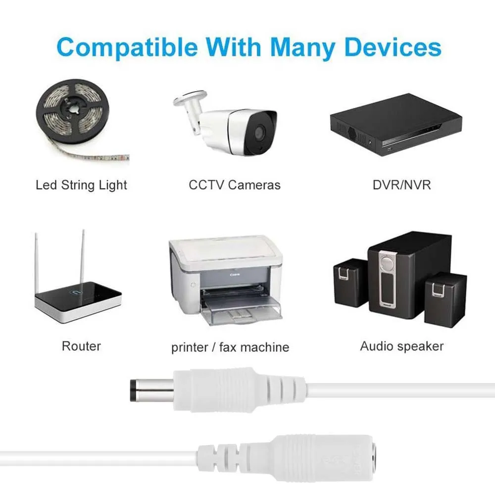 Color: WHITE - DC 12V Extension Power Cable 2.1mm*5.5mm Male To Female Connect Wire White Black 0.5m 1m 2m 3m 5m 10m For LED Light CCTV Camera