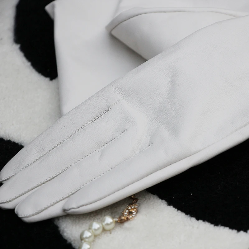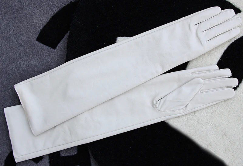 Color: WHITE, Gloves Size: 3 - 50cm New Genuine Leather White Women's High Grade Party Mittens Sheepskin Lady Winter Velvet long Gloves Creamy Ivory Snow White