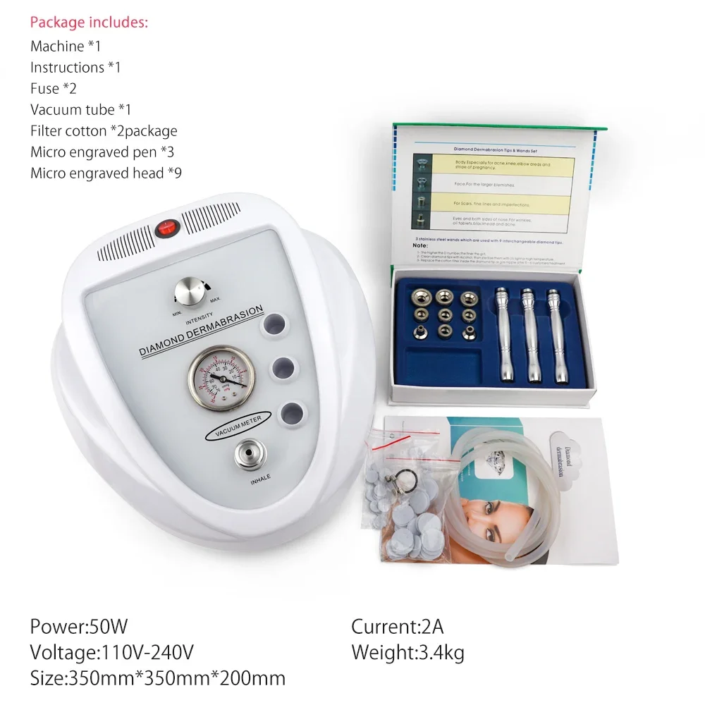 Color: White, Power Source: us - 3 in 1 Diamond Microdermabrasion Machine High Suction Power Professional Dermabrasion Home Use Facial Peeling Skin Care Machine