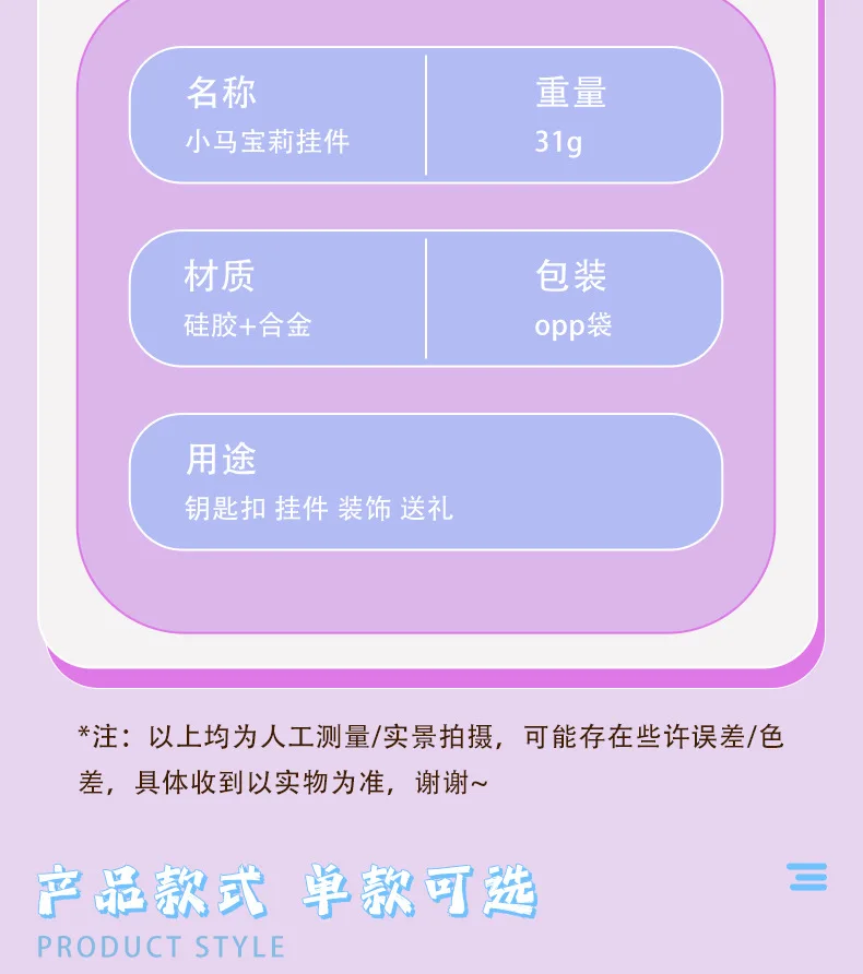 Color: WHITE, Ships From: CHINA - Cartoon My Little Pony Toy Keychain Twilight Sparkle Pinkamena Diane Pie Fluttershy Rarity Rainbow Dash Key Buckle Keyring Gift