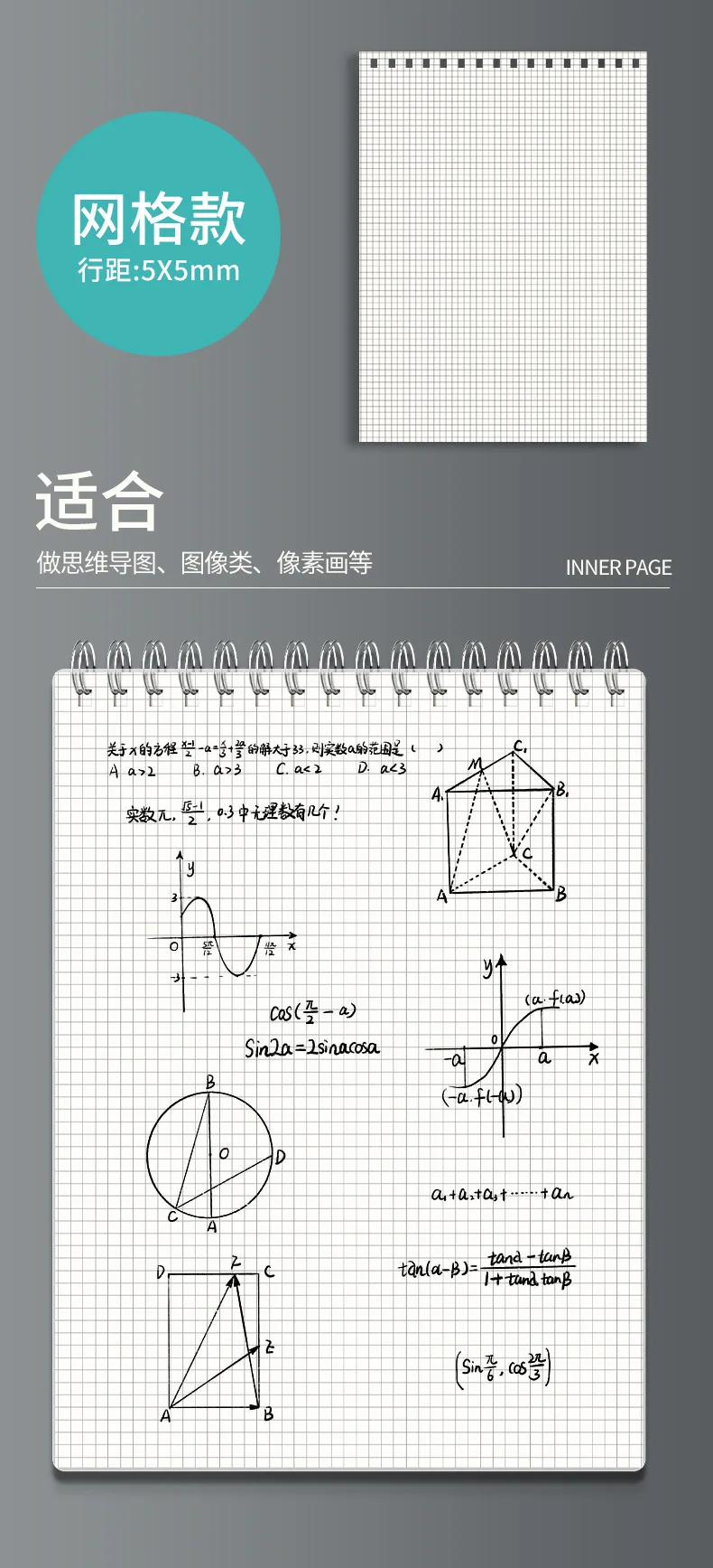 Color: WHITE, Size: B5 - A4 A5 B5 Spiral book coil Notebook To-Do Lined DOT Blank Grid Paper Journal Diary Sketchbook For School Supplies Stationery