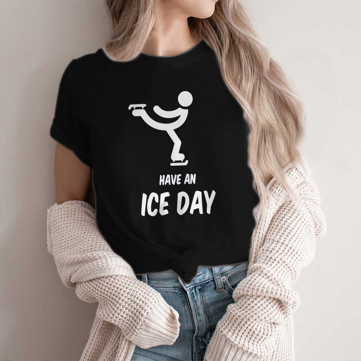 Color: WHITE, Size: M - Have An Ice Day Round Collar TShirt Figure Skating Classic T Shirt Women Tops New Design