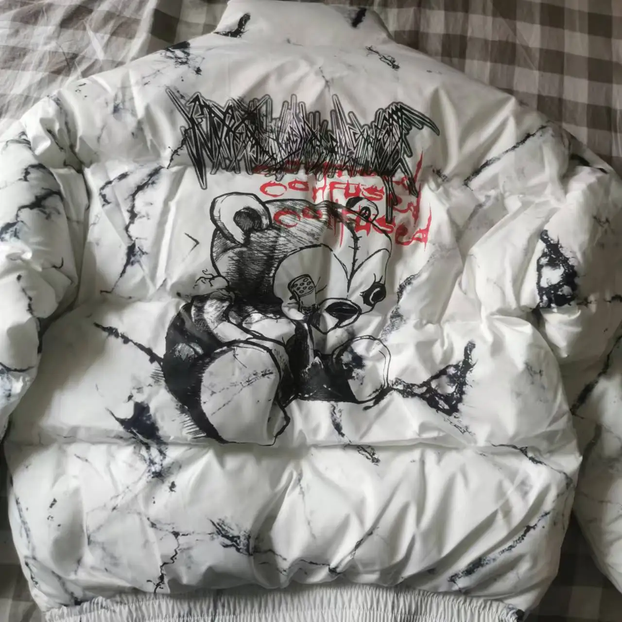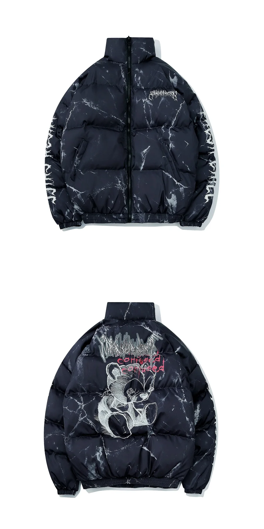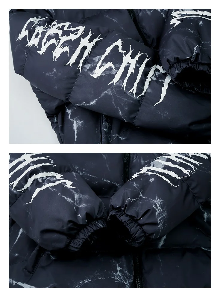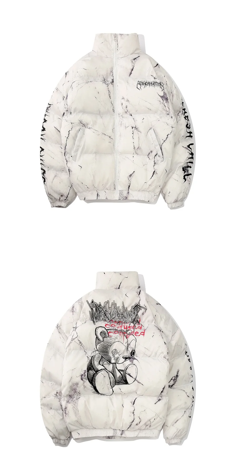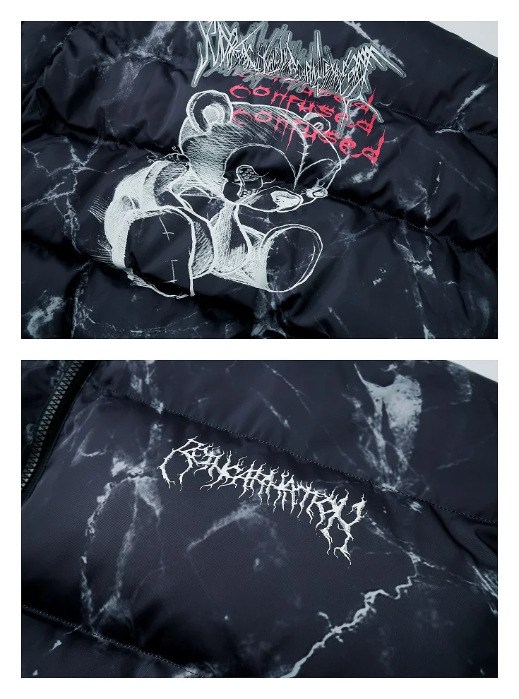 Color: WHITE, Size: M - Winter Down Jacket Coat Men Cartoon Bear Print Parka Fashion Streetwear Casual Loose Thick Warm Padded Oversized Jackets Outwear