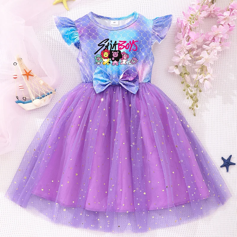 Color: WHITE, Size: One Size, Ships From: CHINA, Height: 158 - KPop Demon Hunter Christmas Princess Dress Girl Fashion Casual Autumn Butterfly Dress Wedding Birthday Party Dress Gift Clothes
