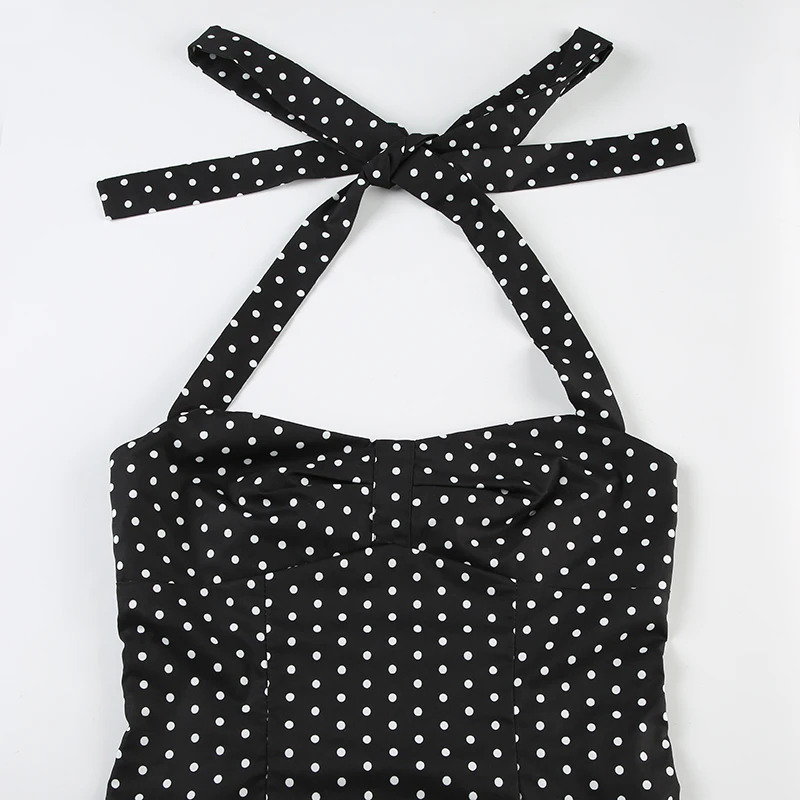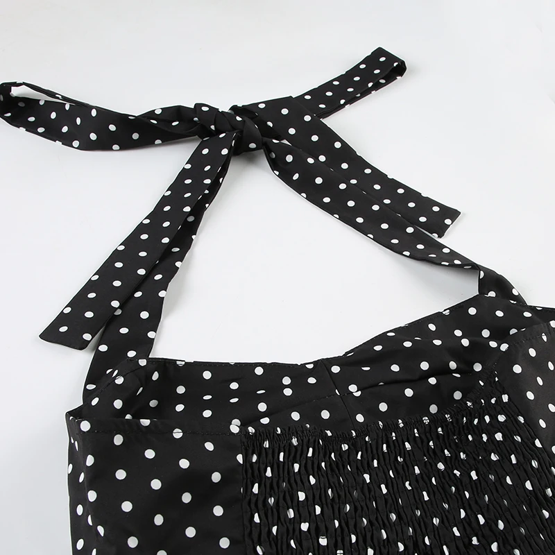 Color: WHITE, Size: S - Causal Cute Polka Dot Print Halter Women Tops Fashion Chic Simple Patchwork Summer New Slim Blouses