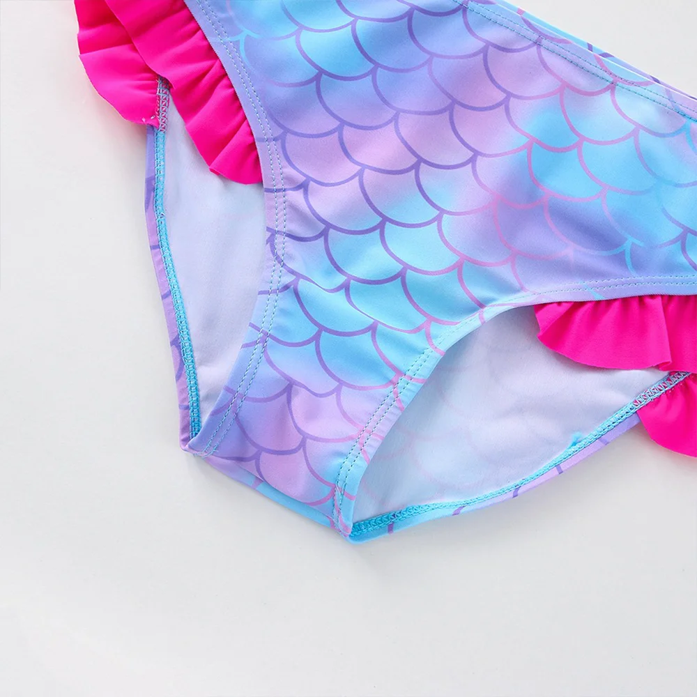 One-piece girls swimsuit, fish scales Designed with a cute ruffle hips.