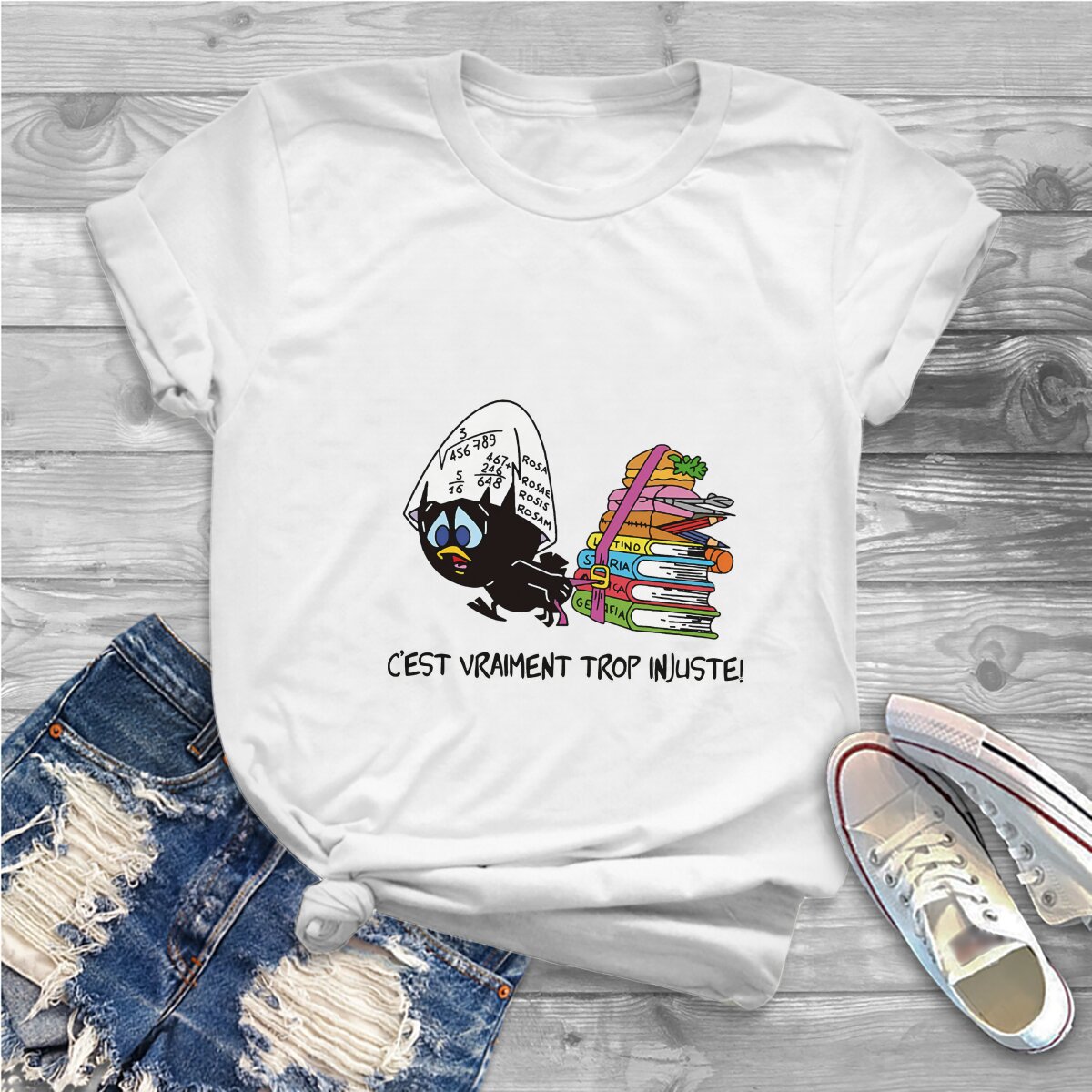 Color: WHITE, Size: XXL - Calimero Cartoon Polyester TShirt for Women C'est Vraiment Trop Basic Summer Tee T Shirt Novelty Trendy
