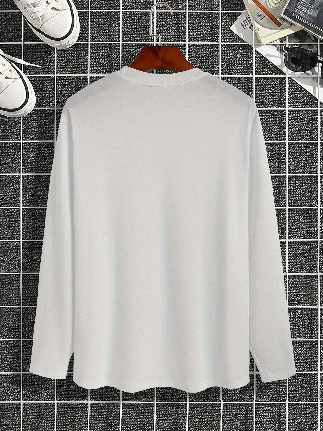 Color: WHITE, Size: XXL - Spring and Autumn 100% Cotton Men's London ENGLAND Letter Printed Loose Sport and Leisure Round Neck Long Sleeve T-shirt