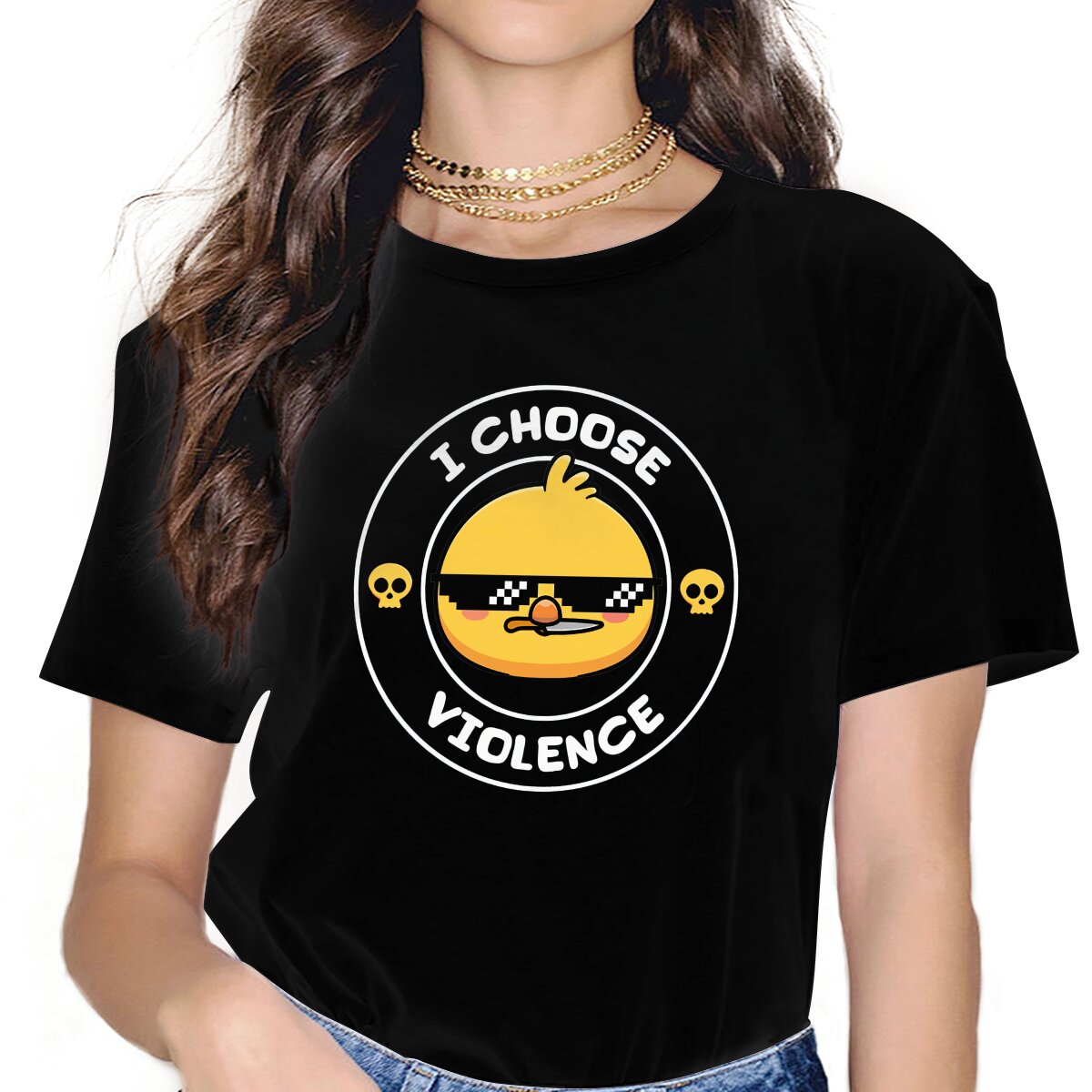 Color: WHITE, Size: XXL - Sunglasses Style Polyester TShirt I Choose Violence Funny Duck Comfortable New Design Gift Idea T Shirt Stuff