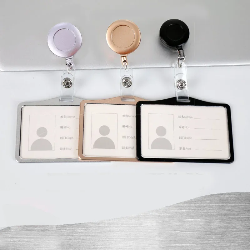 Color: wine red - Aluminum Alloy Card Cover Case Women Men Work Name Bank ID Card Holders Business Badge Case Credit Card Badge Case Bag Pouch