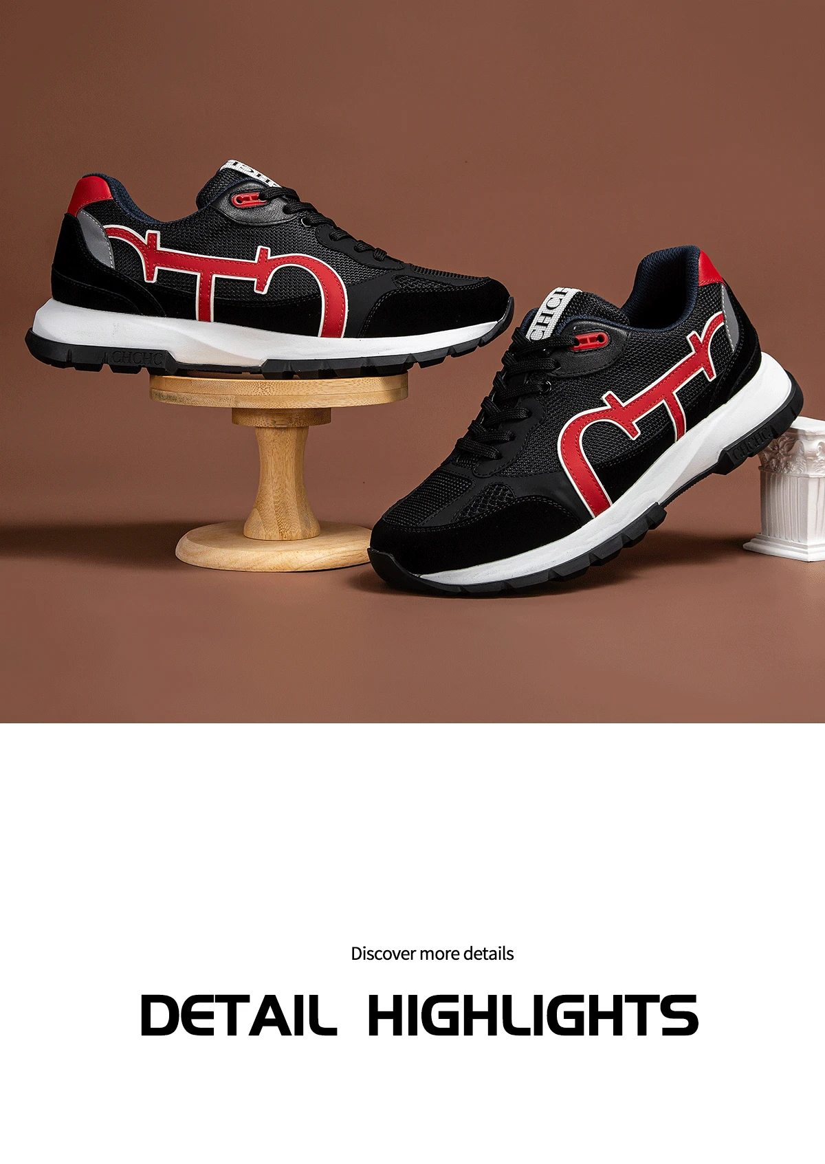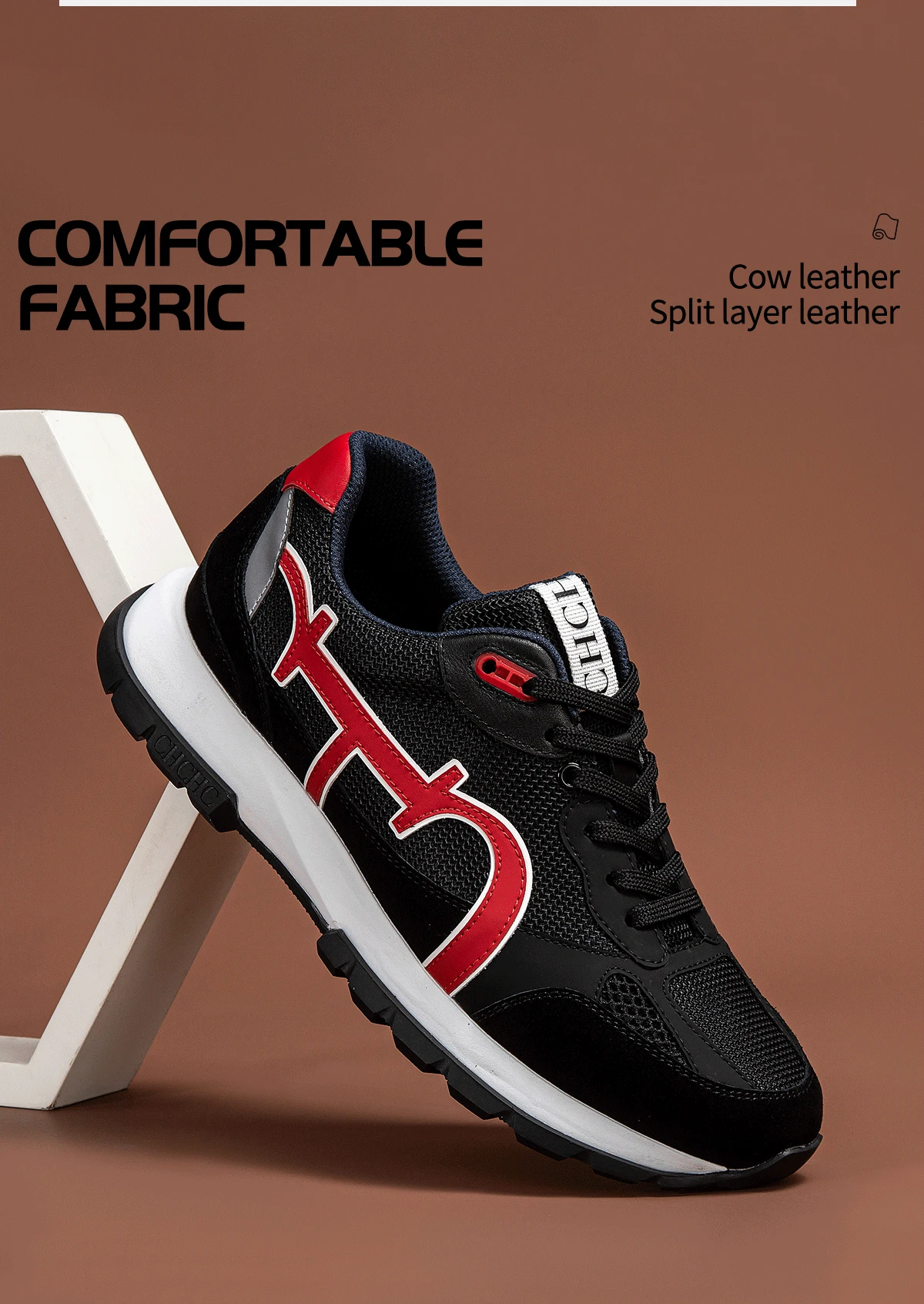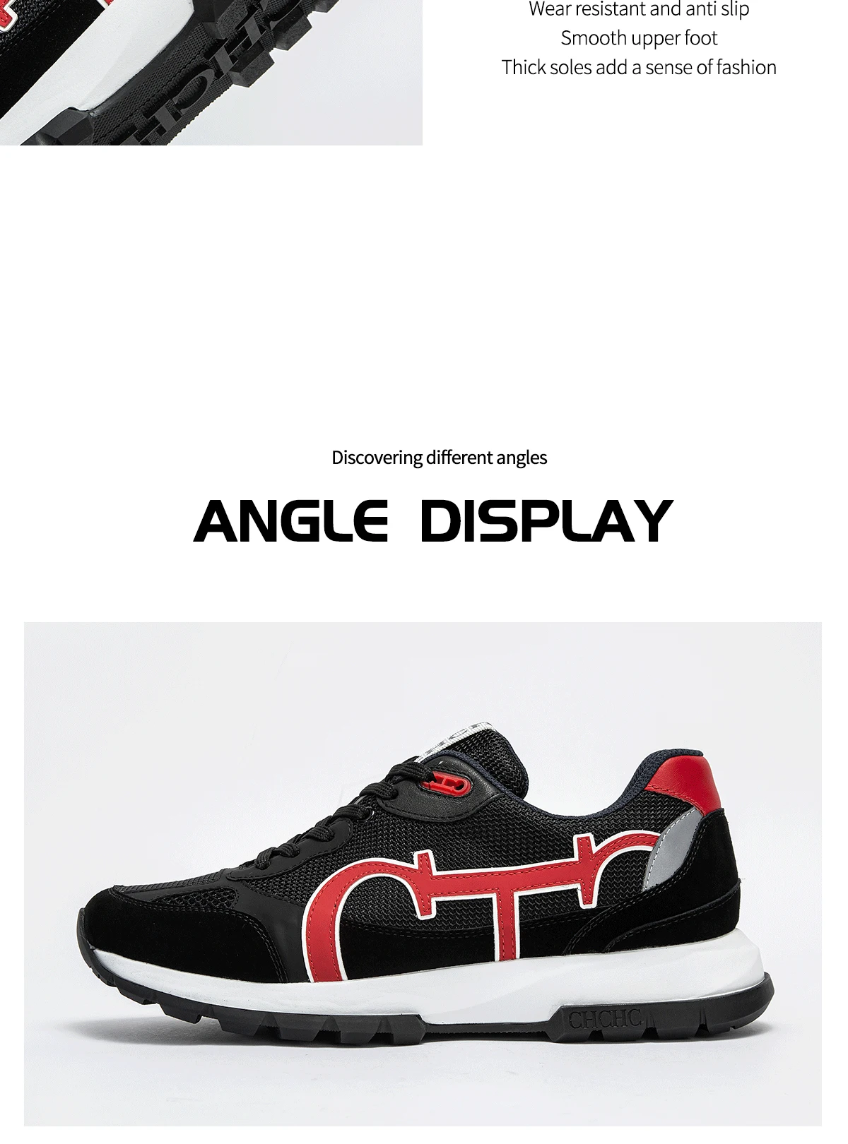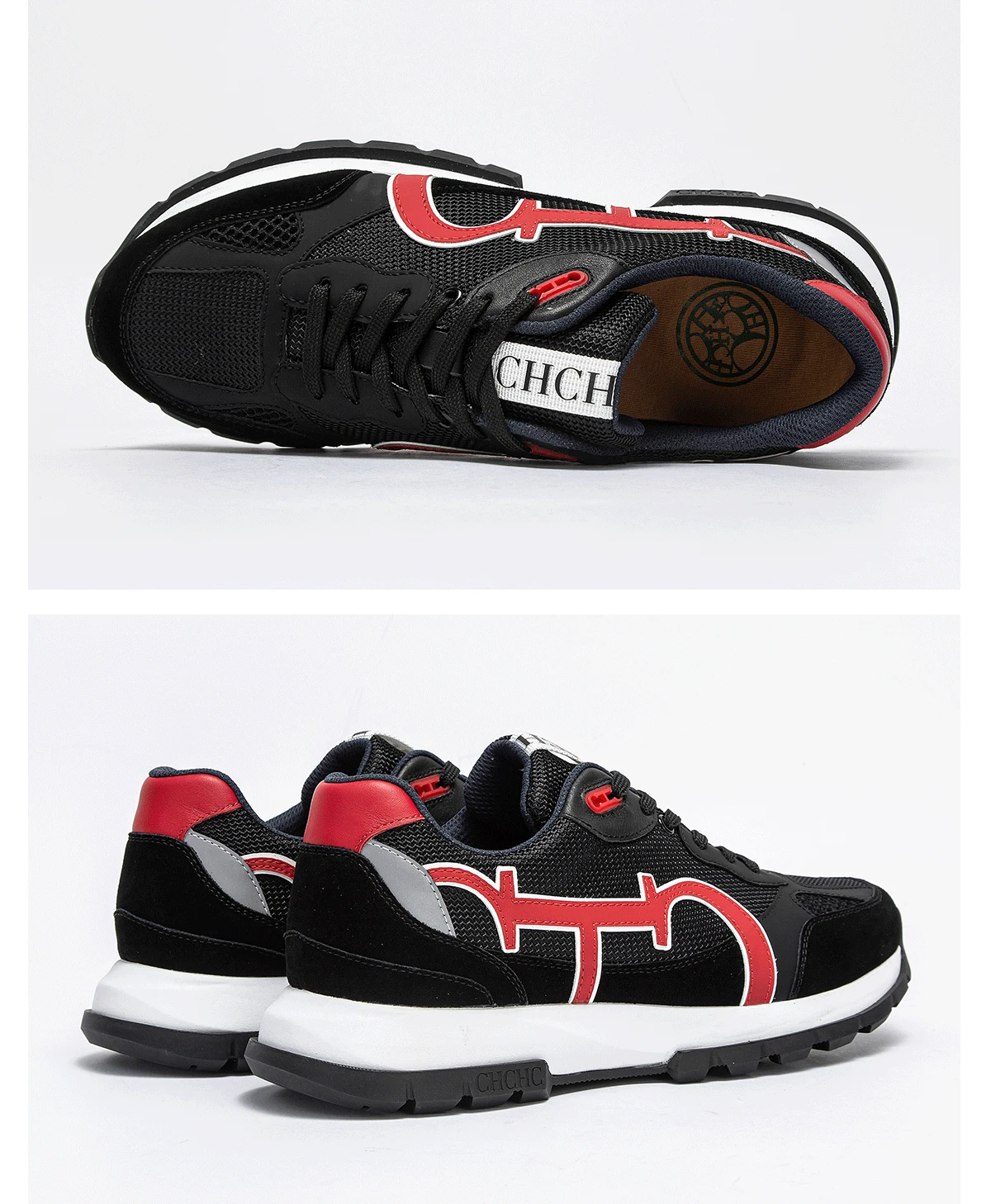 CHCH Men's Tennis Shoes Black Cow Leather Material Stitching Design Men's Shoes Sports Shoes