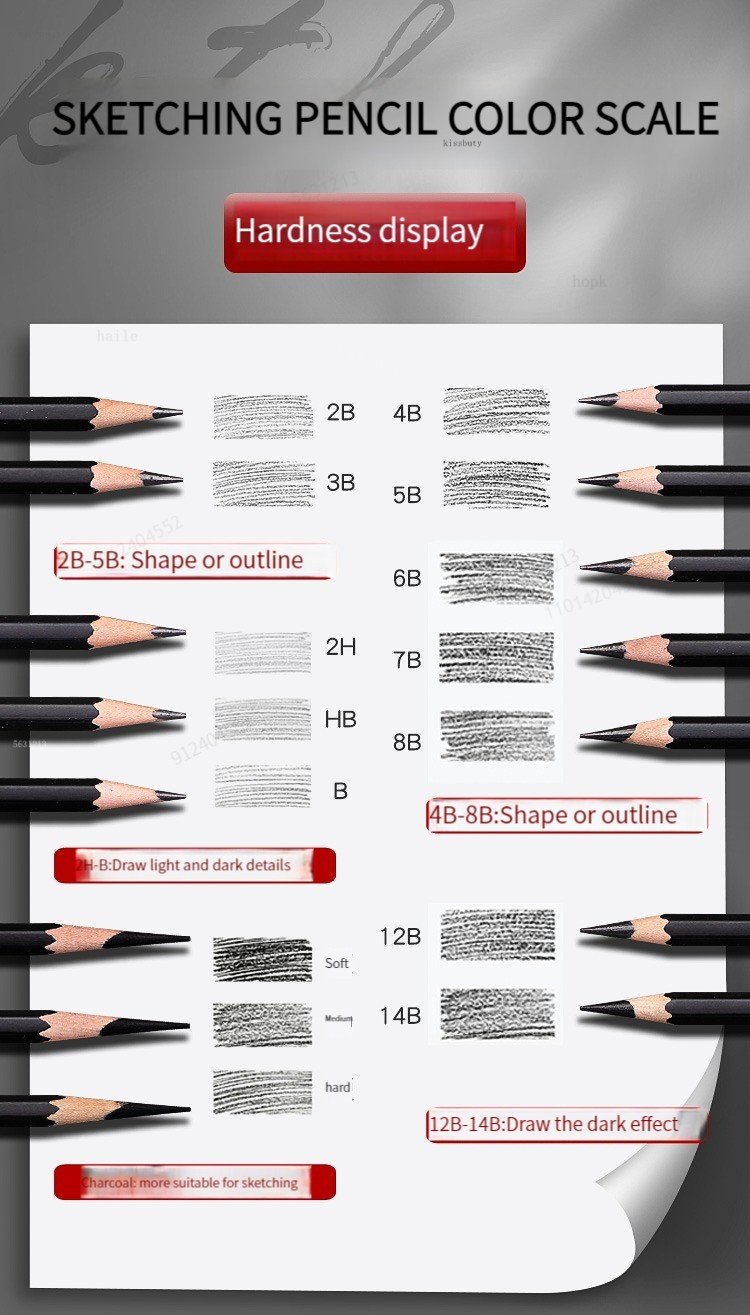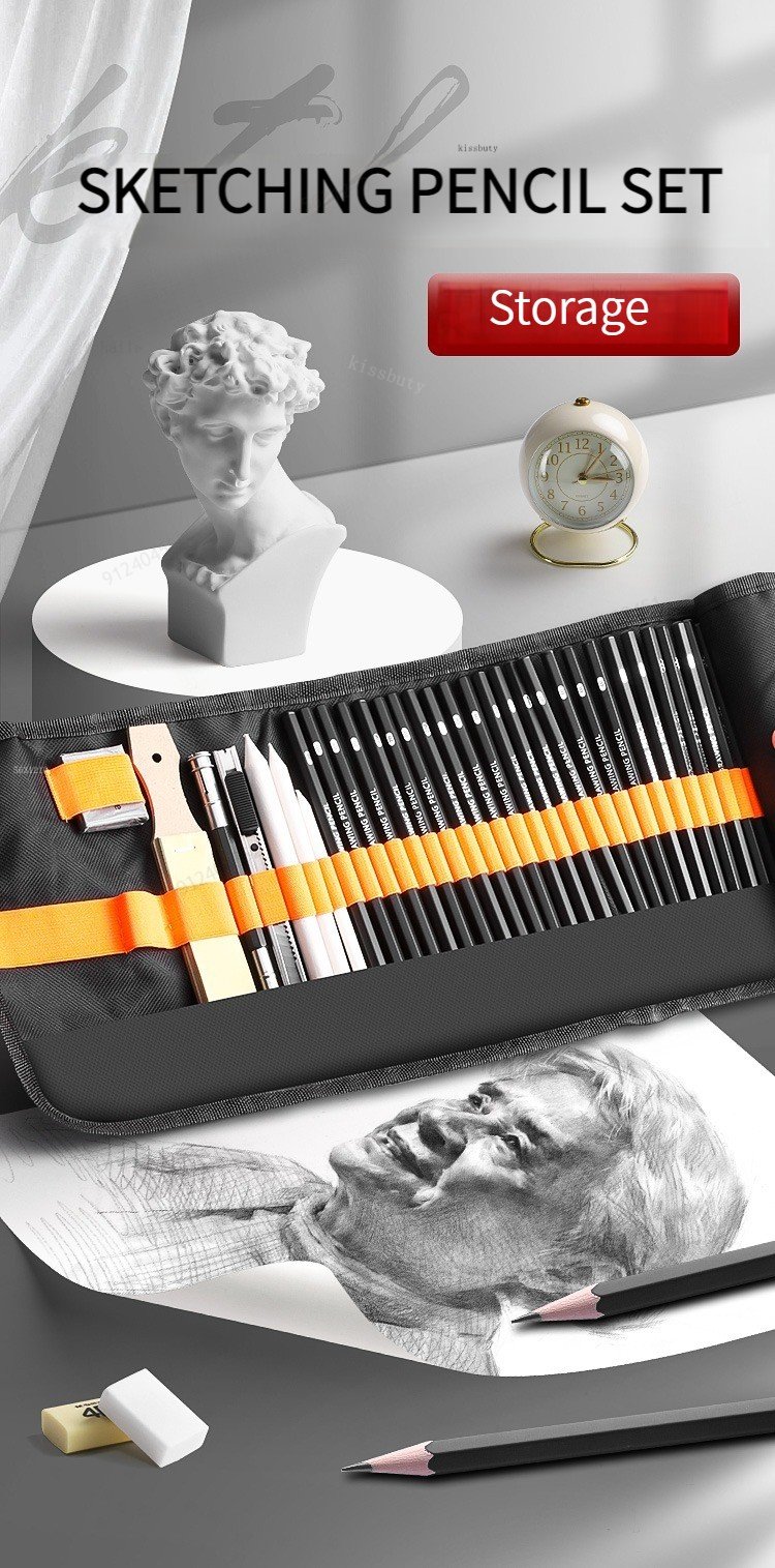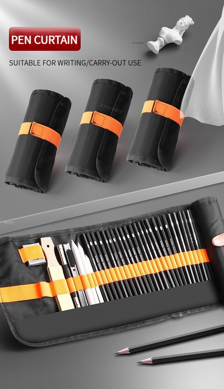 Color: Yellow - 27/38/47pcs Sketch Pencils Set Roll Up Canvas Wrap Sketching Pencil Bag Art Drawing Supplies Charcoals Kneaded Eraser