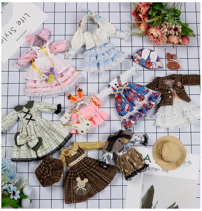 Color: Yellow - 30CM BJD Doll Clothes Girl Dress Up Makeup DIY Toys Accessories Dress Princess Doll House Set Children Humanoid Doll Girl Gifts