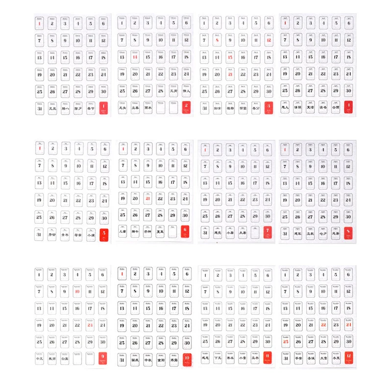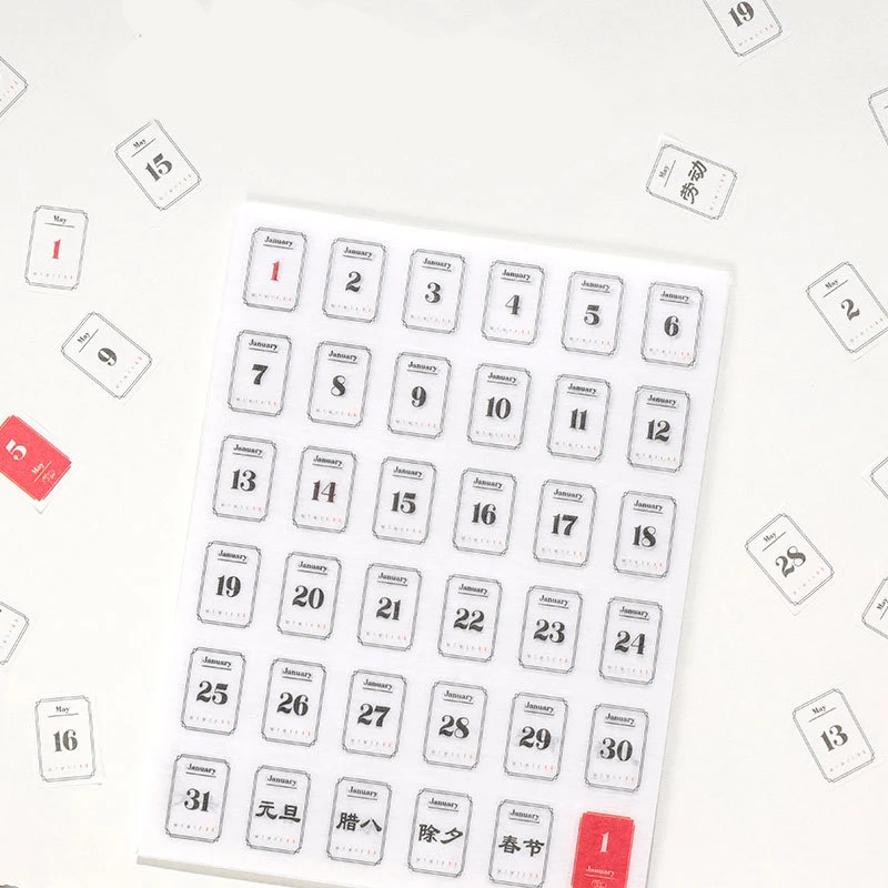 Color: Yellow - 365 Days Sticker Payment Stick Account Notebook Sticker Full Year Calendar Sticker Index Tab Reminder Sticker Student Stationery