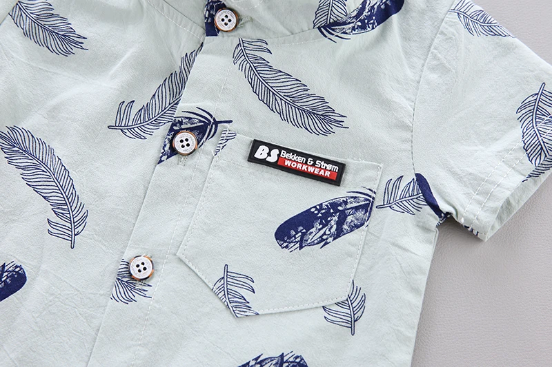 Color: Yellow, Kid Size: 12M - 0-3 Year Old Baby Summer Feather Print Shirt Short Sleeve Suit