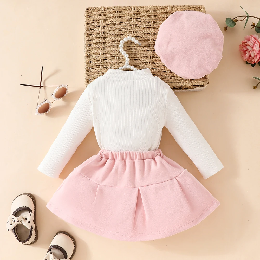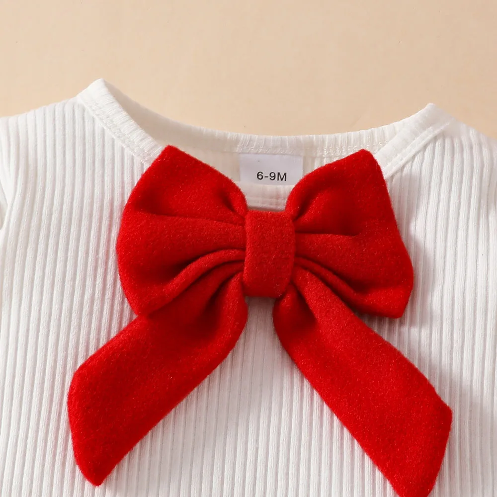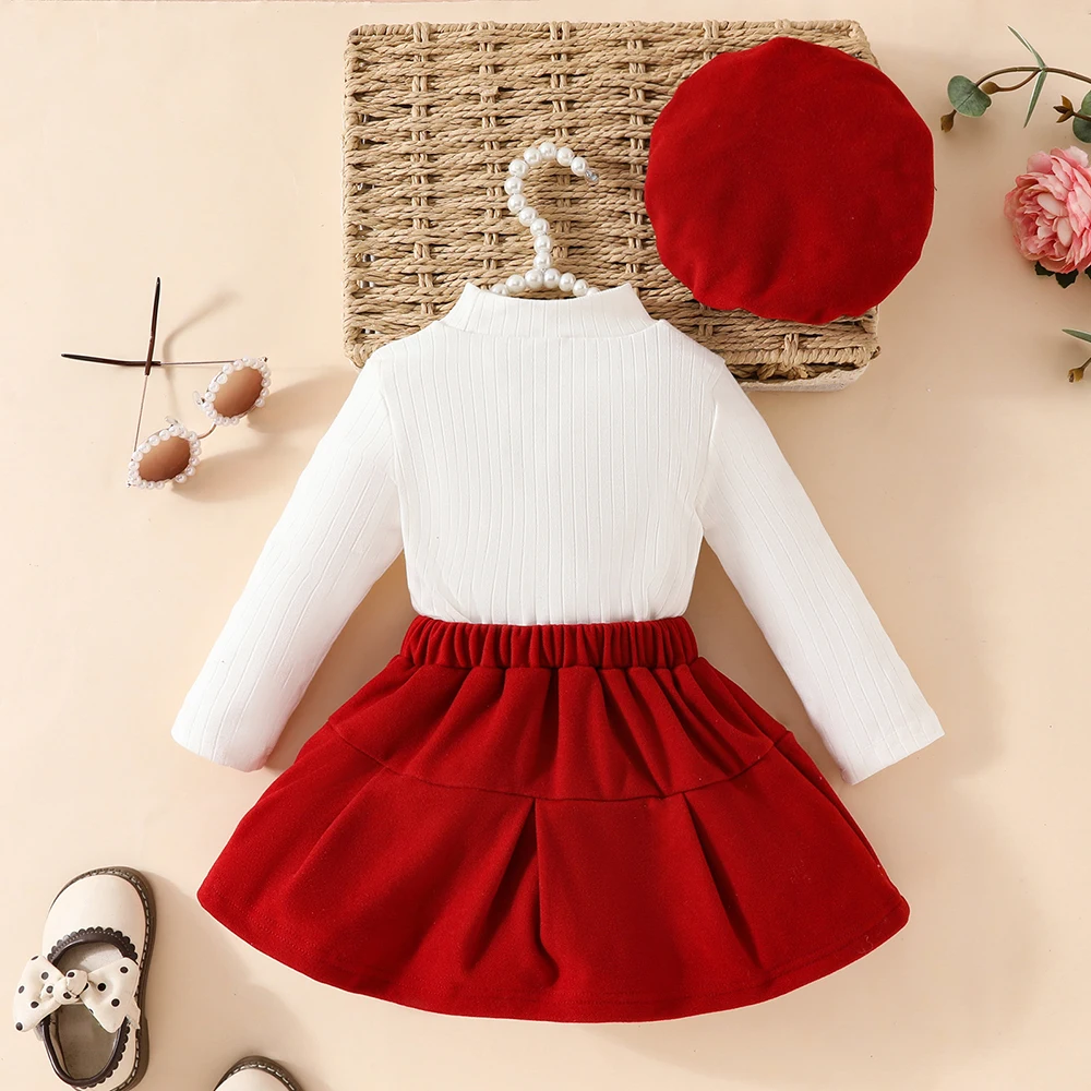 Color: Yellow, Kid Size: 3T - Baby Girls Clothes New Year Set 0-3Y Long Sleeve Big Bow Top Irregular Skirt and Beret 3Pcs Toddler Christmas Clothes